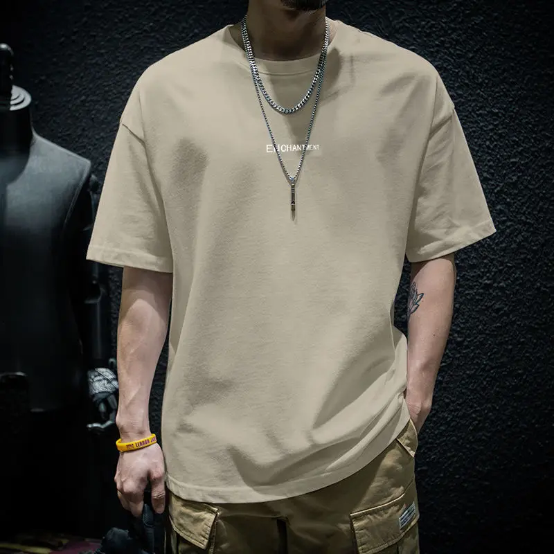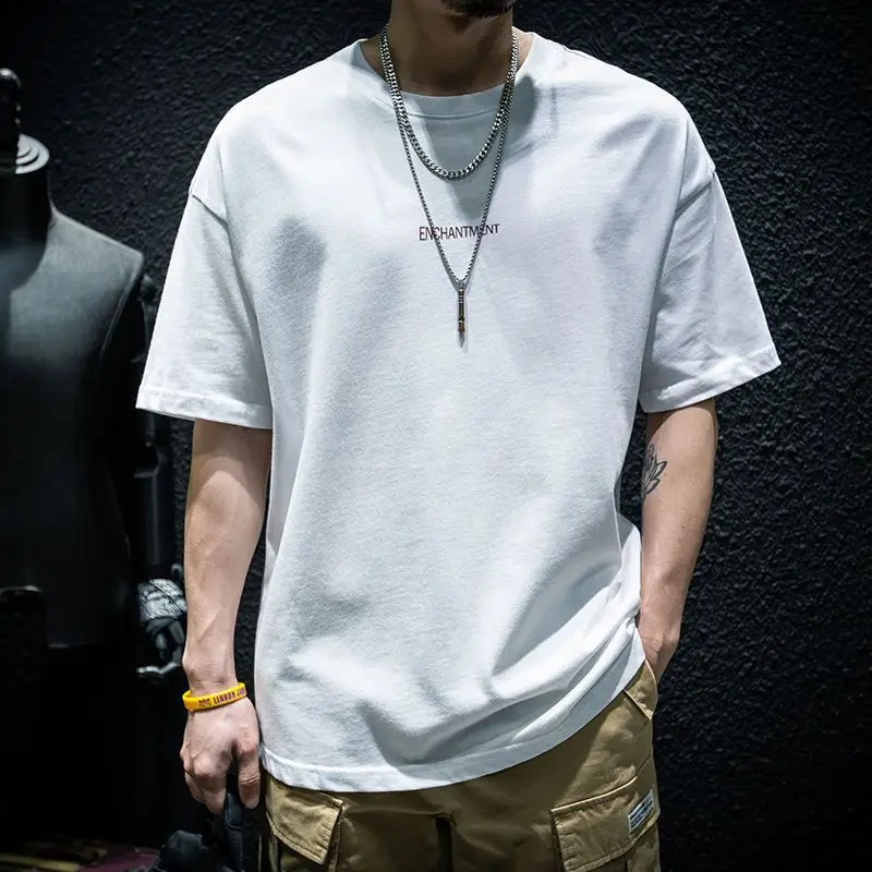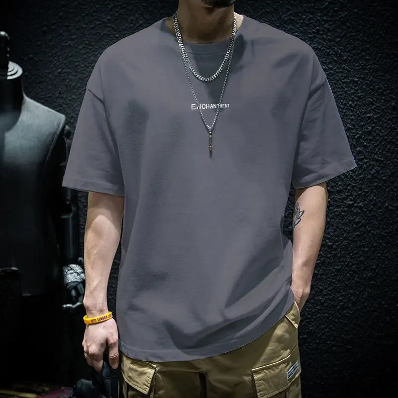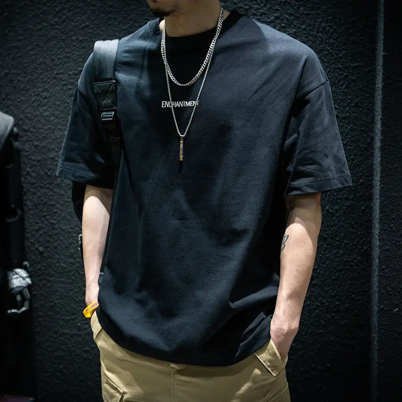 Top Basic Cotton Loose Short Quarter Sleeve Men’s T-shirt Plain Fashion Casual Streetwear Mens Tee Shirts Chic Wholesale Clothes