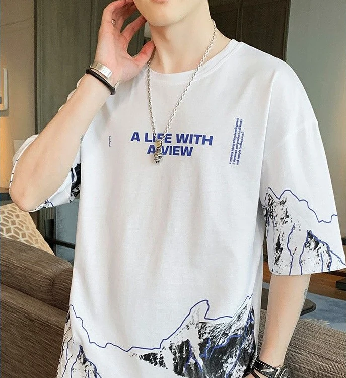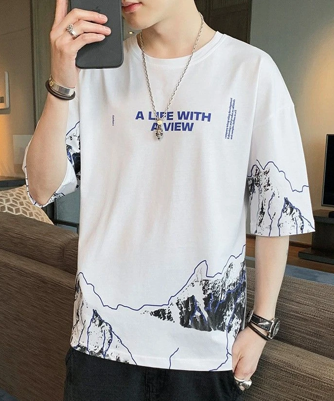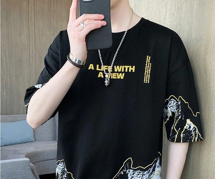 Tops Black Male Tees Shirts Print Graphic Men’s T-shirt Watercolor Heather New in Fashion Cheap Clothes and Free Shipping Funny