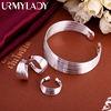 URMYLADY 925 sterling silver high-quality for women lady chain open cute bangle bracelet earrings ring fashion jewelry Sets