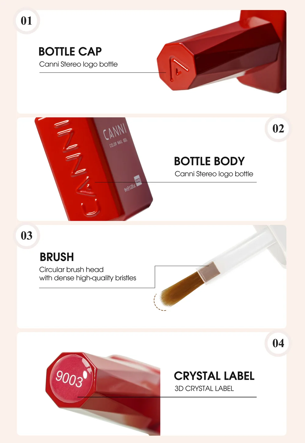 Canni HEMA FREE Nail Gel Polish using step :dehydrator- primer – base coat – color coat gel – top coat