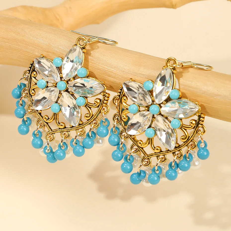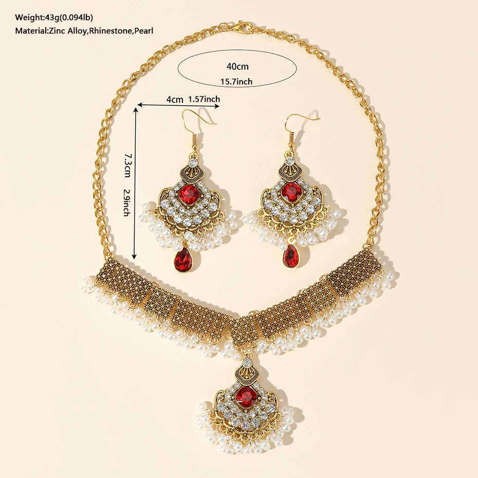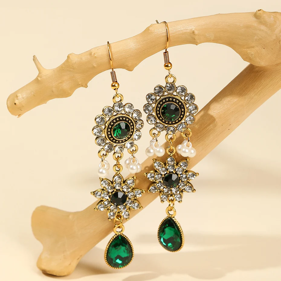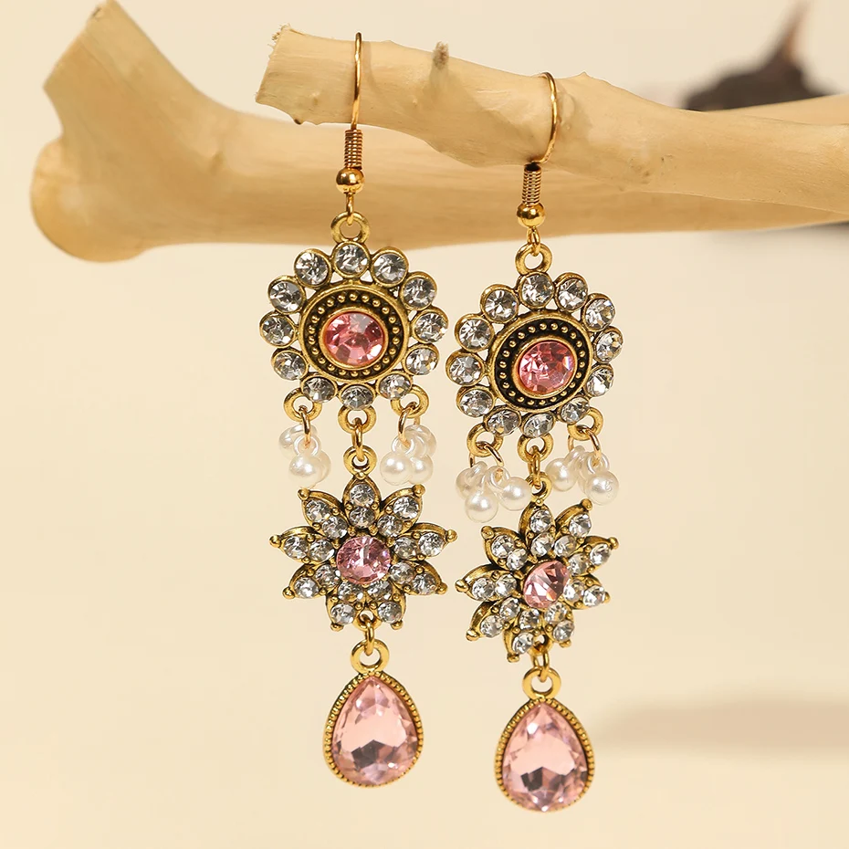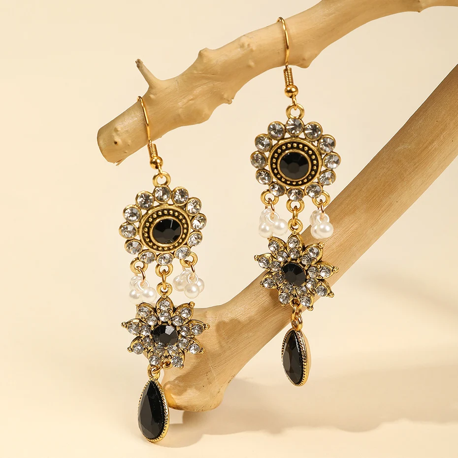 Vintage Crystal Flower Jewelry Sets for Women Accessories Rhinestone Antique Gold Color Necklace and Earrings Set Party Gift