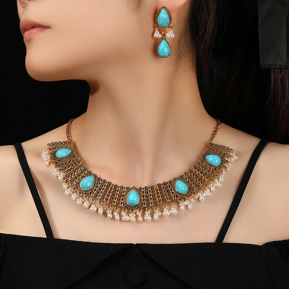 This jewelry sets is a new style designed by our designers. It is a very vintage gold necklace and sets. I believe you will love this jewelry sets.