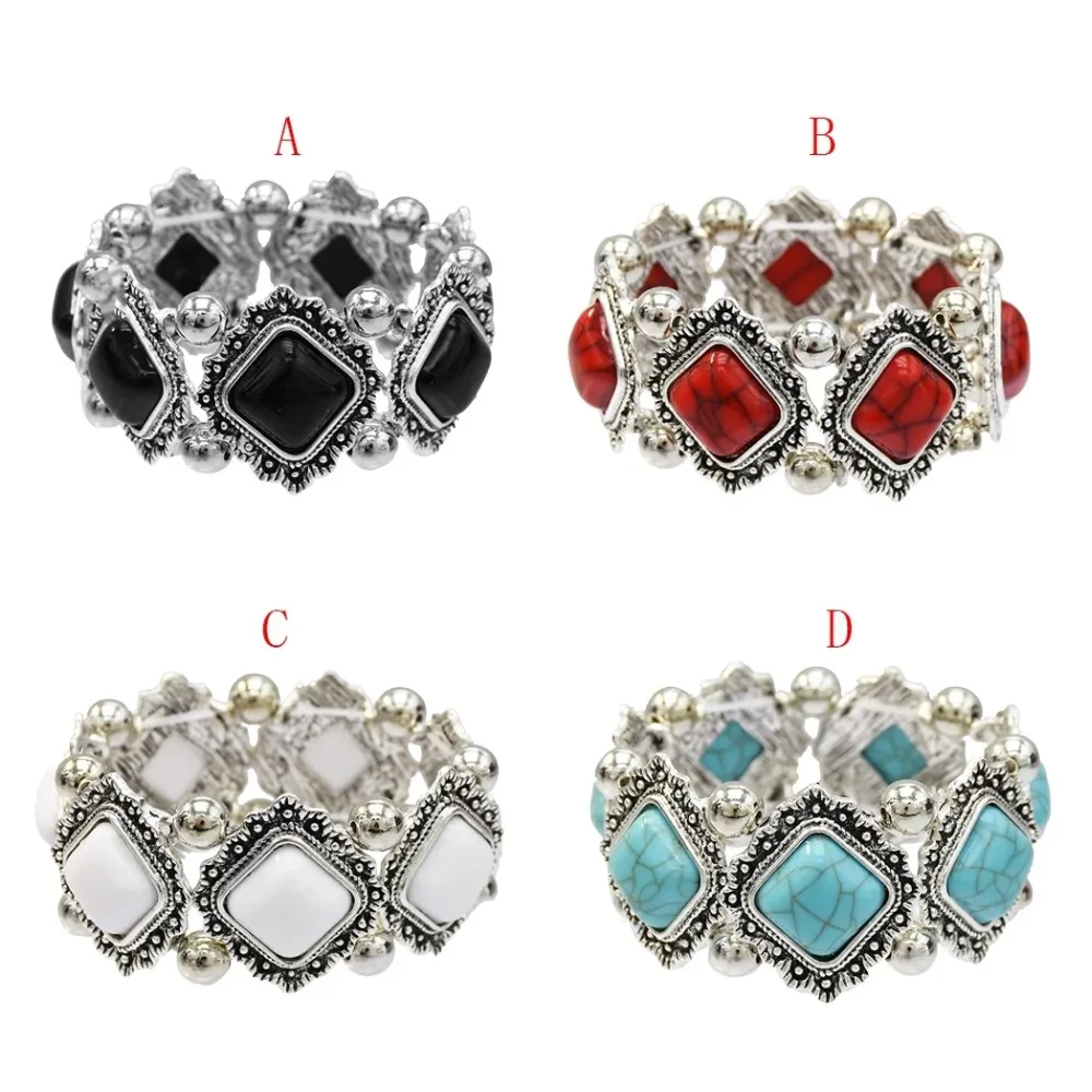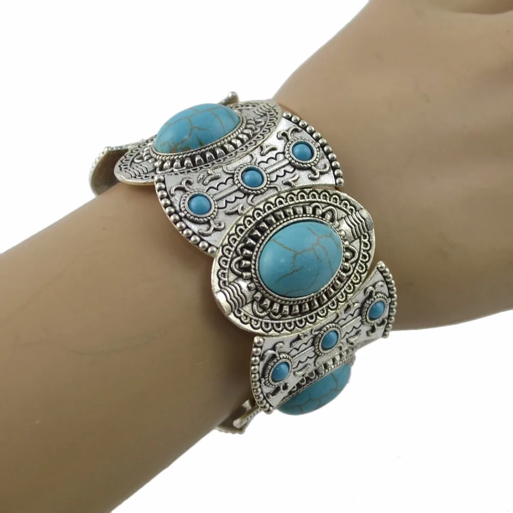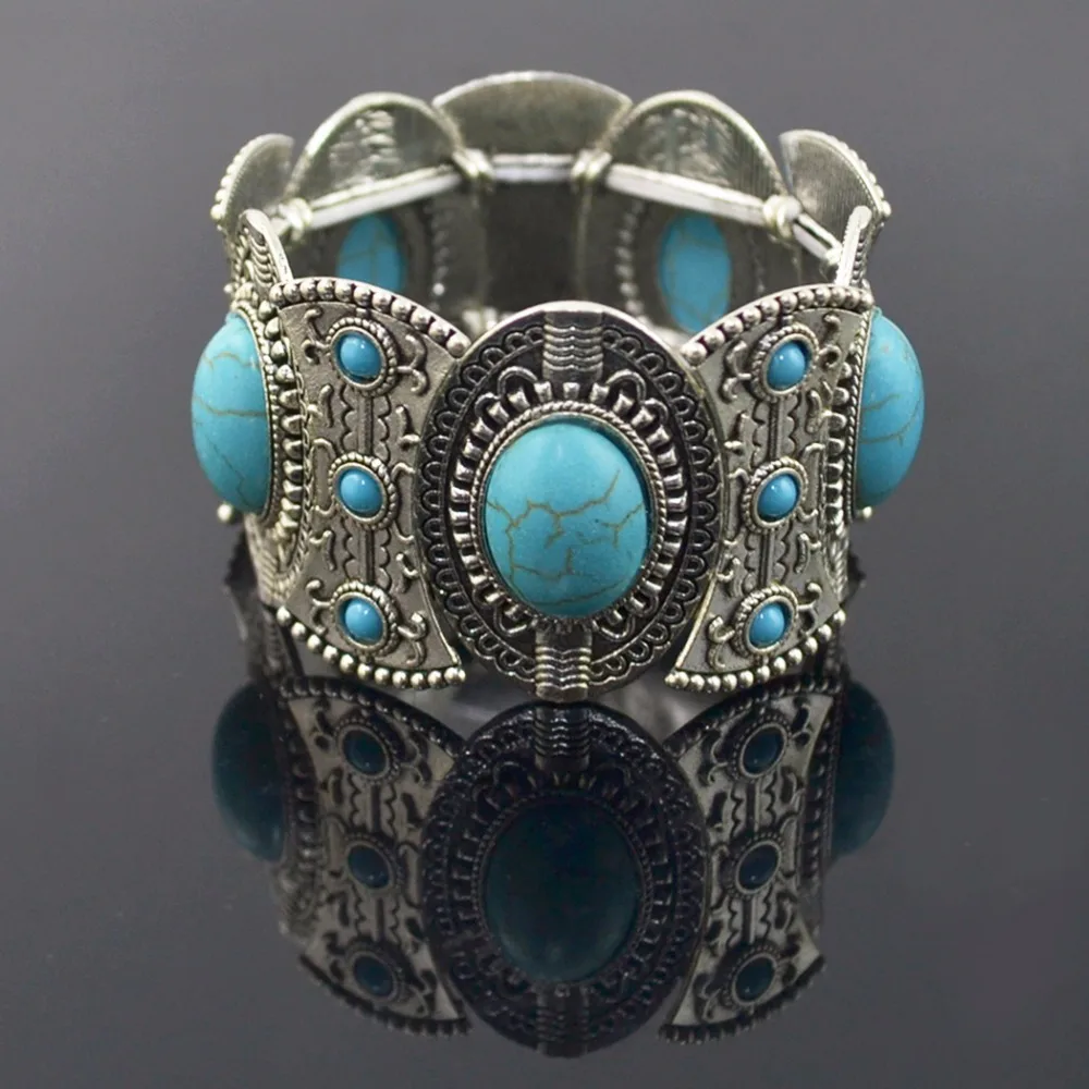 Product:Gypsy Tibet Vintage Turquoise Elastic Bracelet For Women Men Bangles Bracelets Bohemian Ethnic Punk Boho Indian Turkish Jewelry