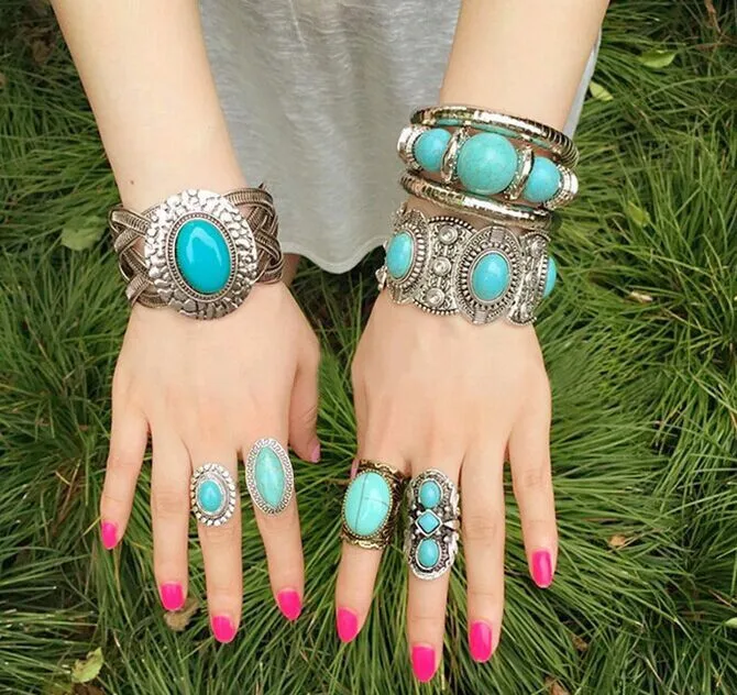 Product:Gypsy Tibet Vintage Turquoise Elastic Bracelet For Women Men Bangles Bracelets Bohemian Ethnic Punk Boho Indian Turkish Jewelry