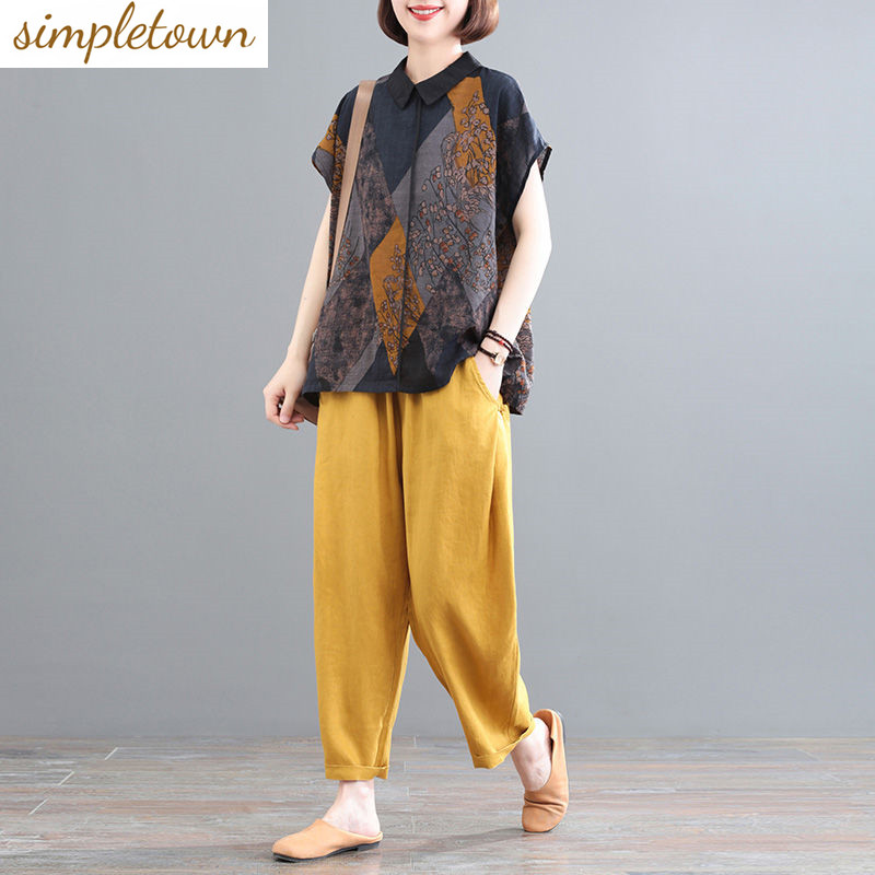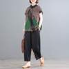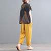 Vintage Printed Pure Cotton Short Sleeved T-shirt Loose Wide Leg Pants Two-piece Elegant Women’s Pants Set Summer Outfits