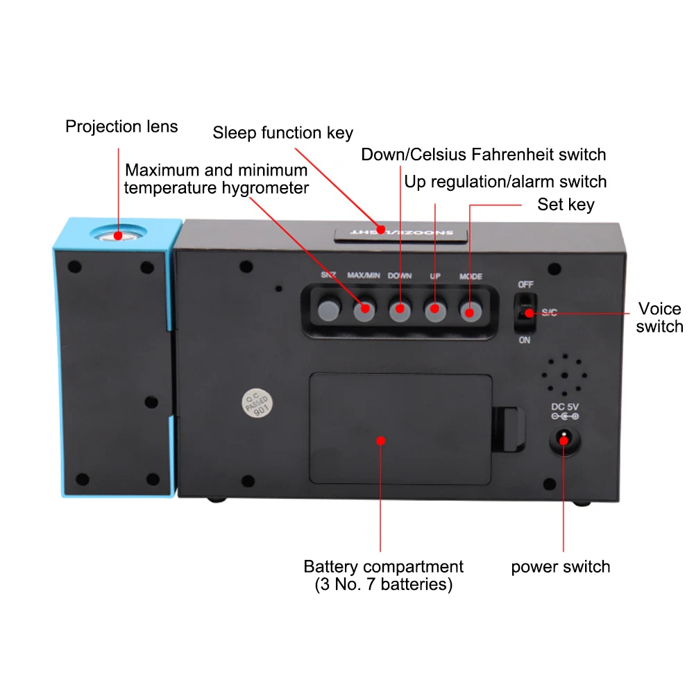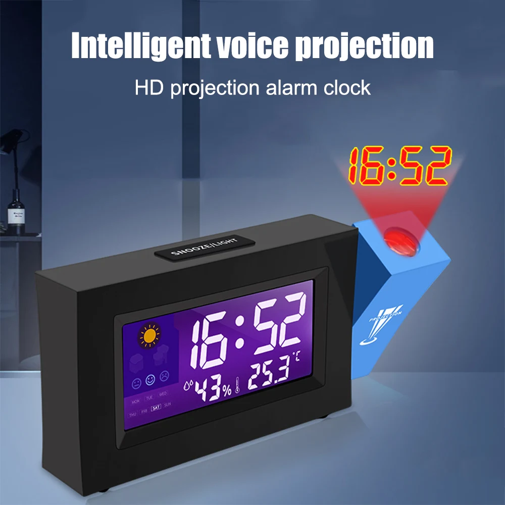 Voice Projection Alarm Clock LED Digital Smart Projector Snooze Alarm Clocks Electronic Weather Forecast Wake Up Desktop Clocks
