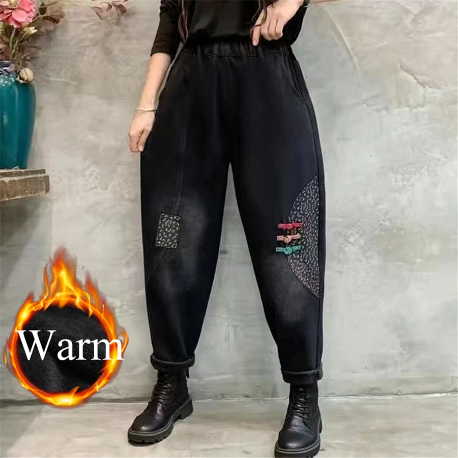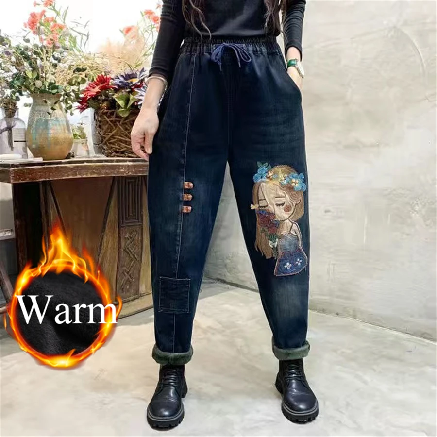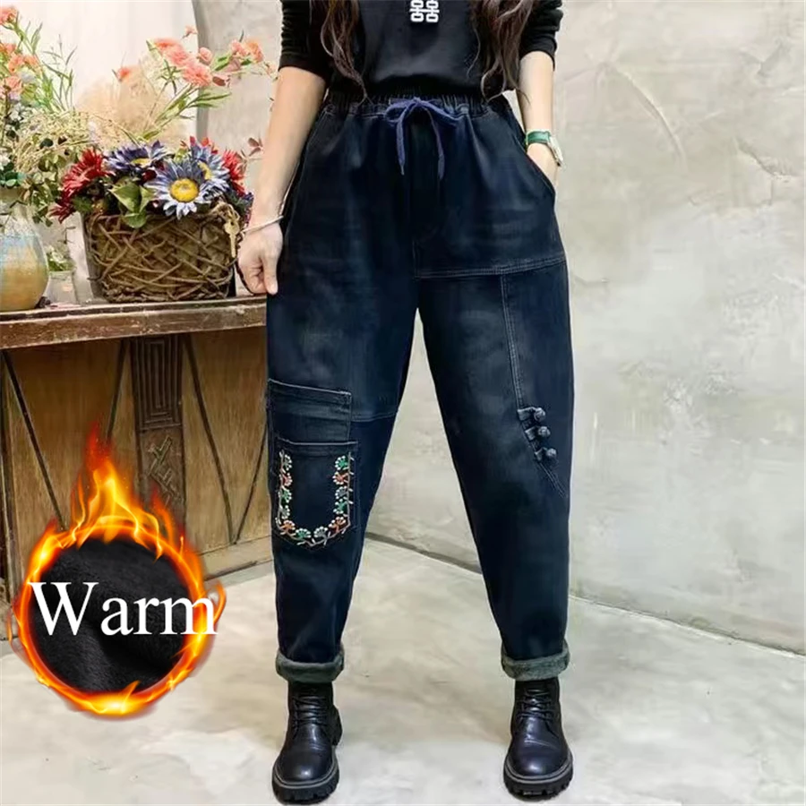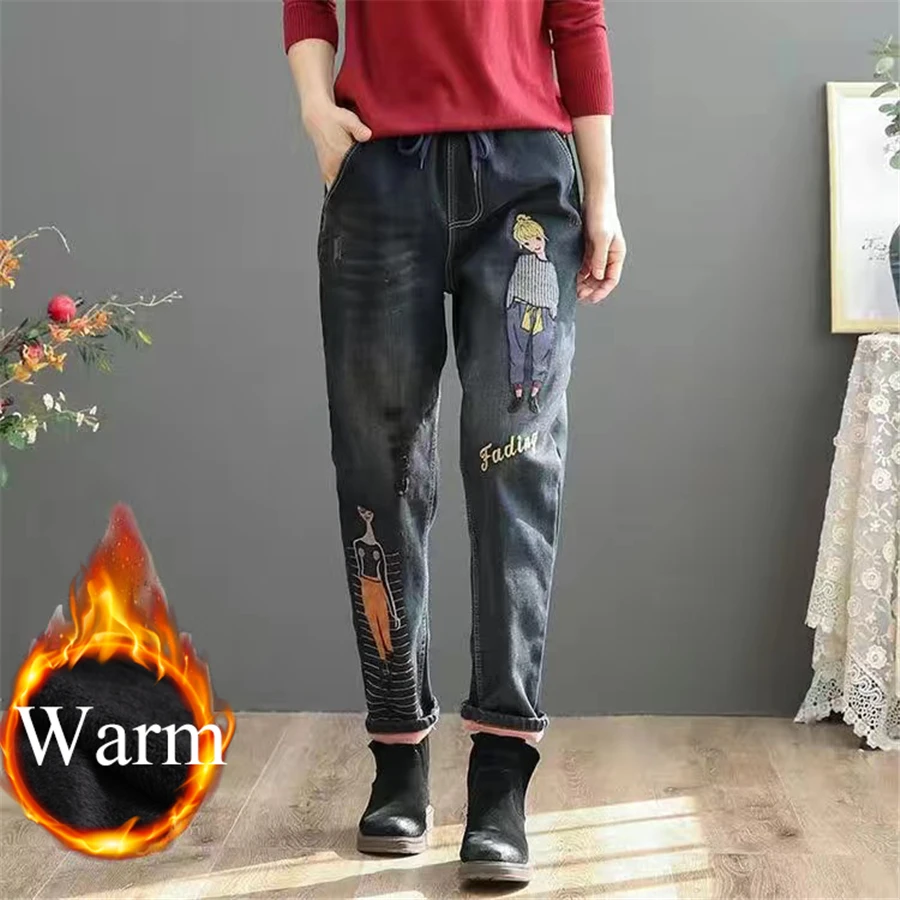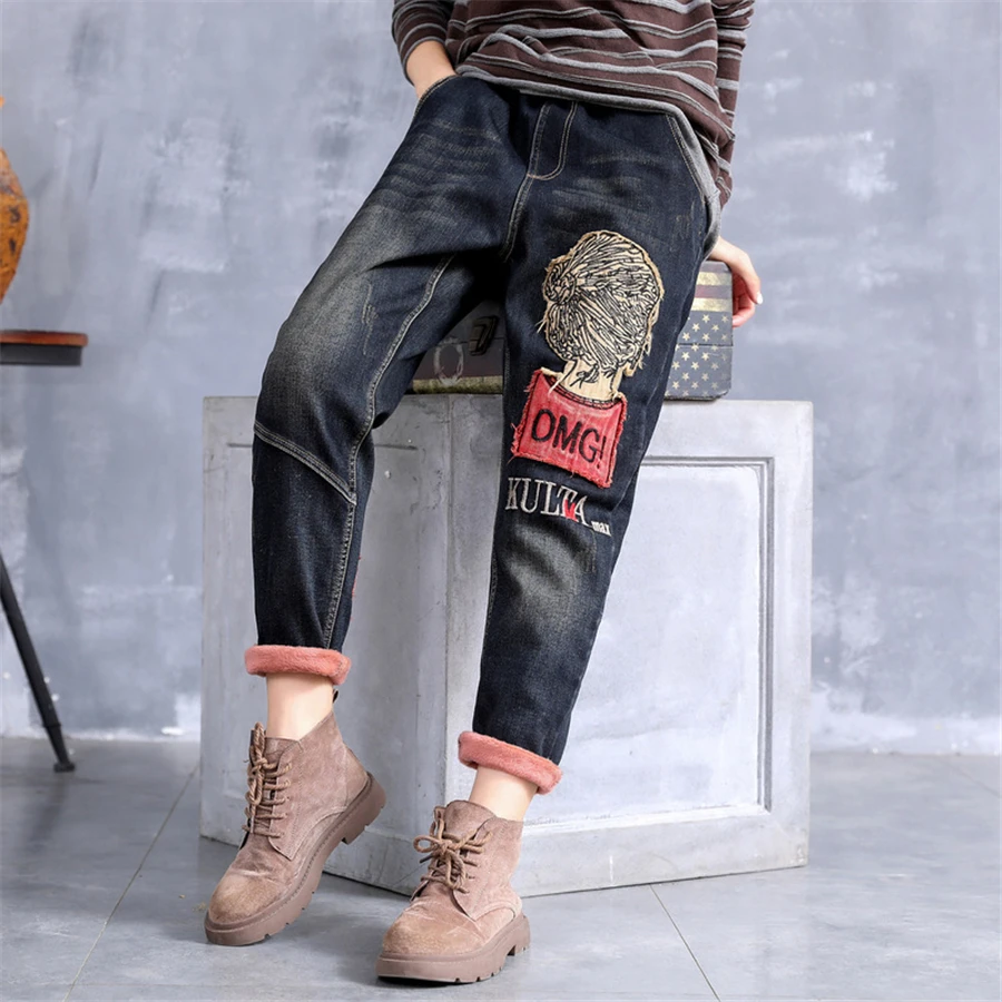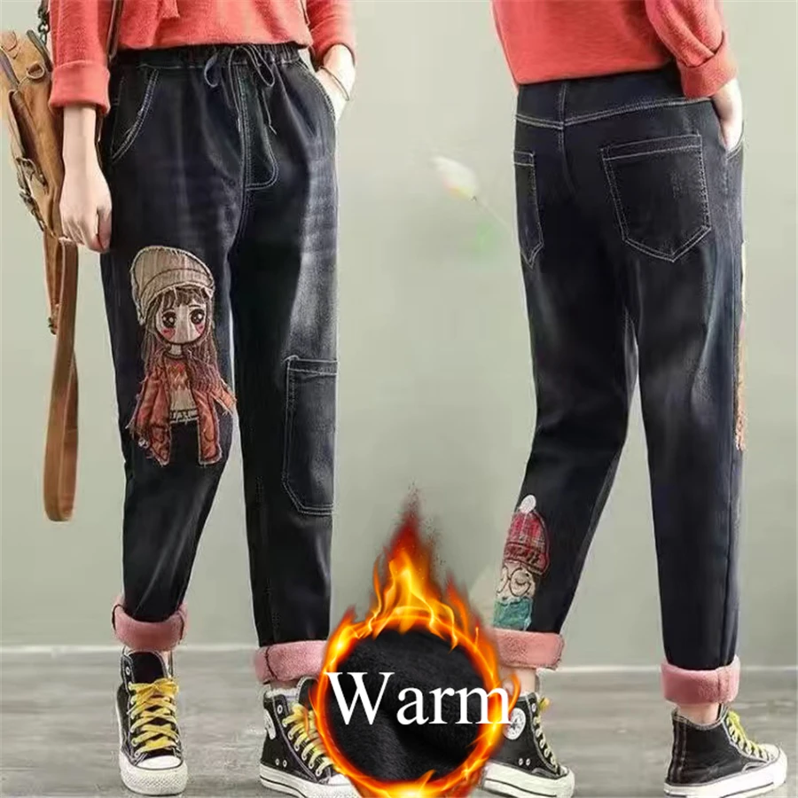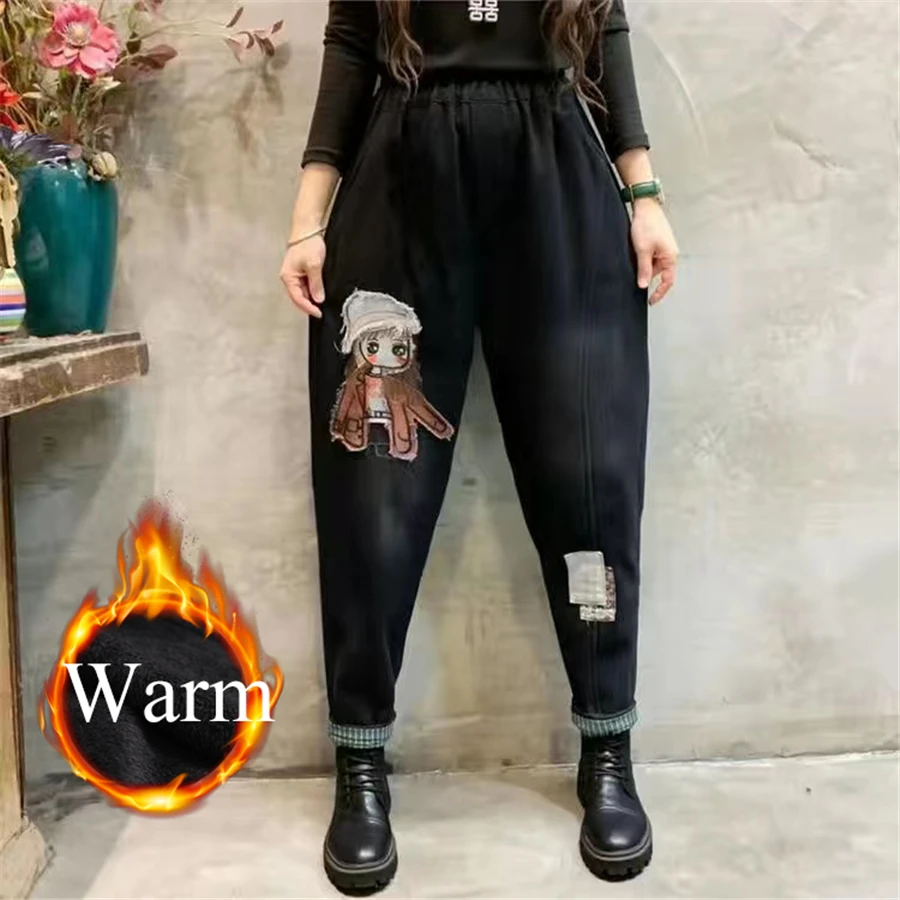 Winter Plus Velvet y2k Harem Baggy Jeans Women Warm Thicken Denim Pant High Waist Capris Casual Fleece Vaqueros Korean Pantalon