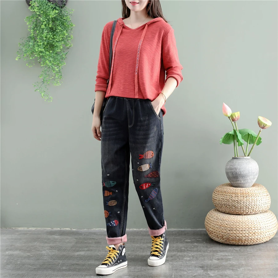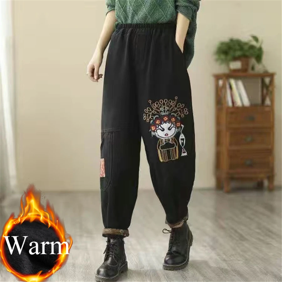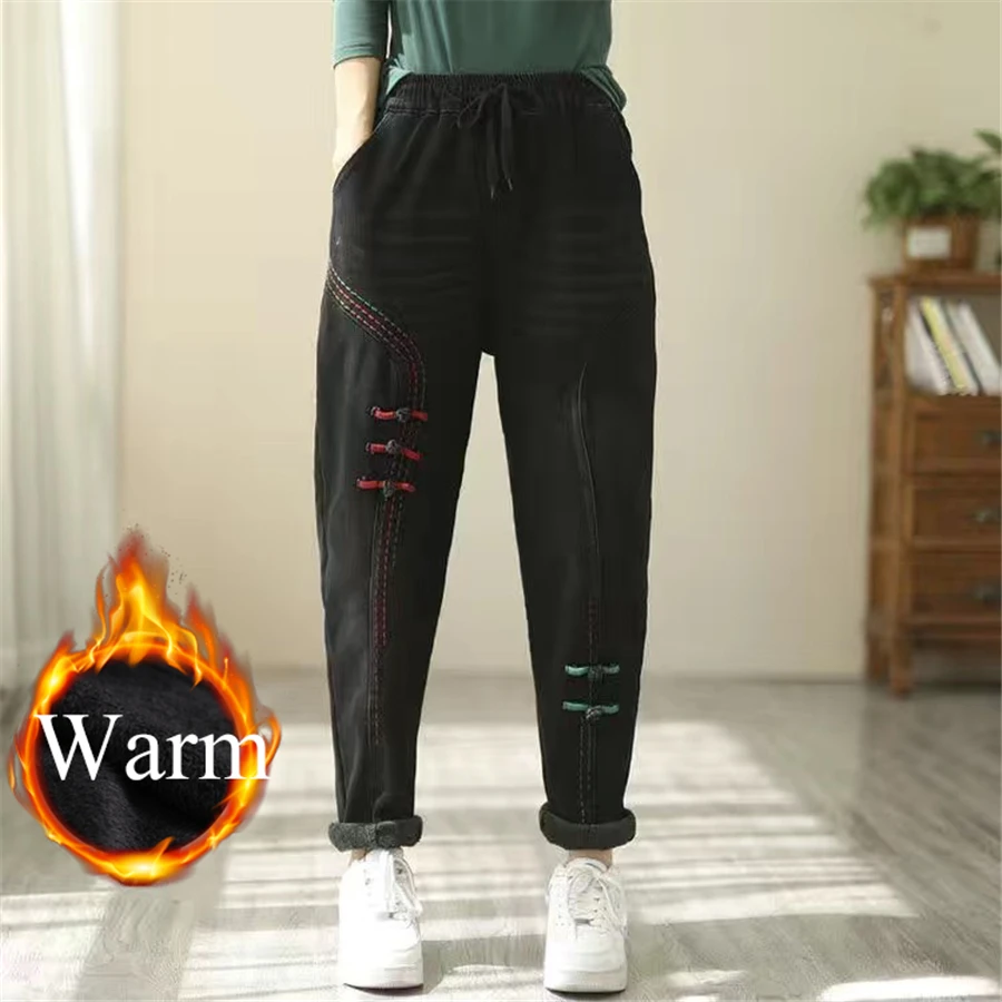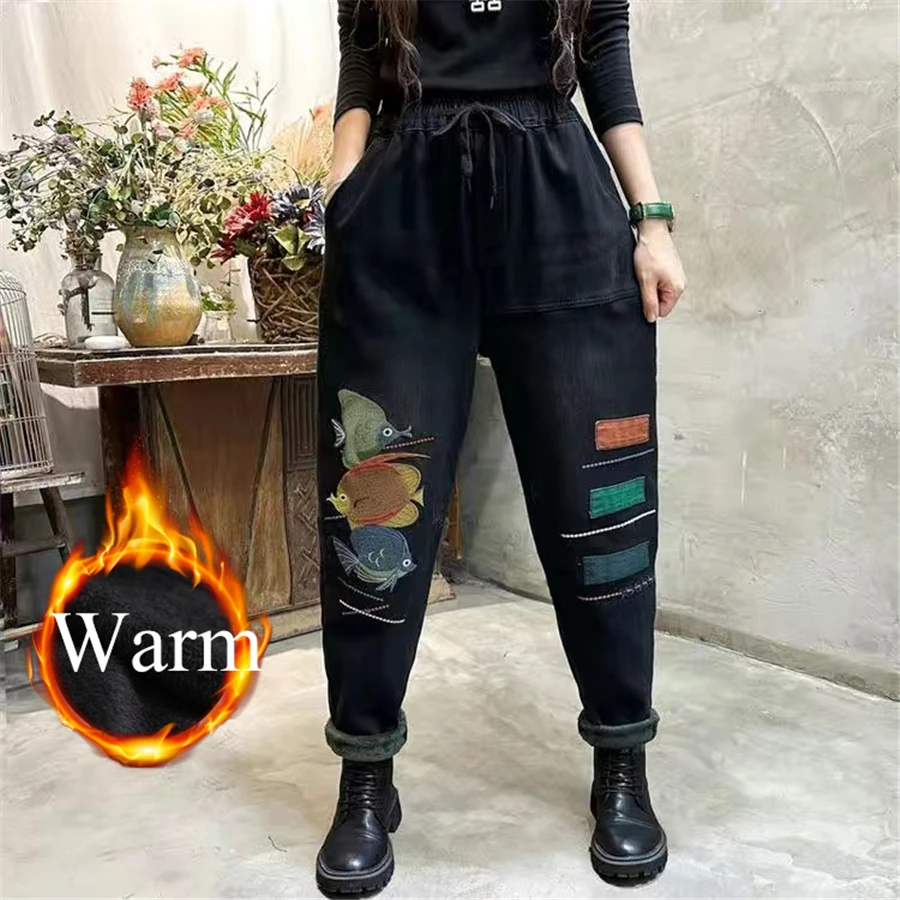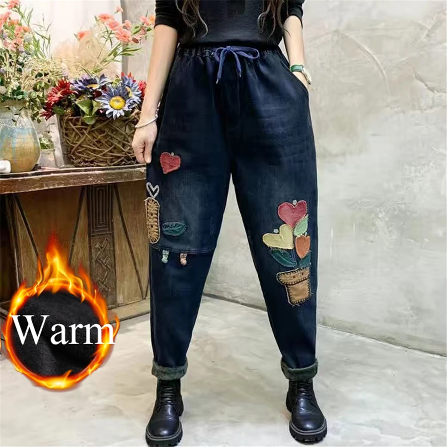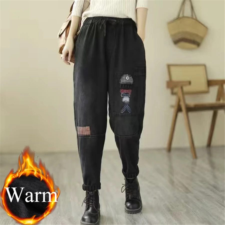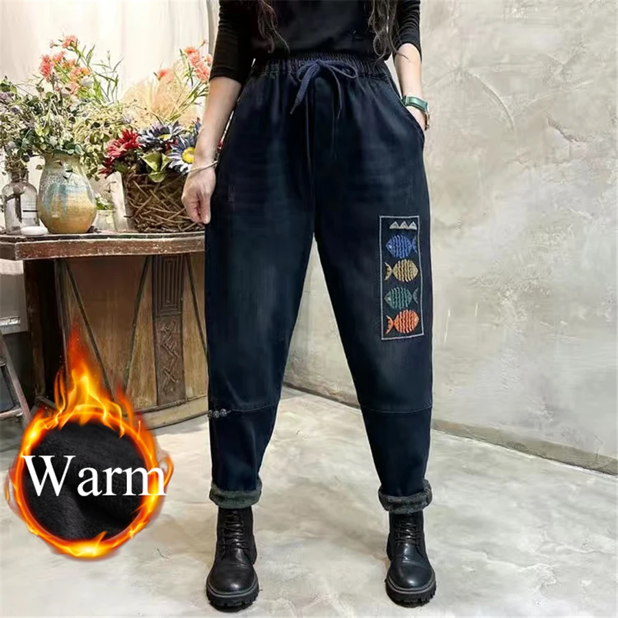 Winter Plus Velvet y2k Harem Baggy Jeans Women Warm Thicken Denim Pant High Waist Capris Casual Fleece Vaqueros Korean Pantalon