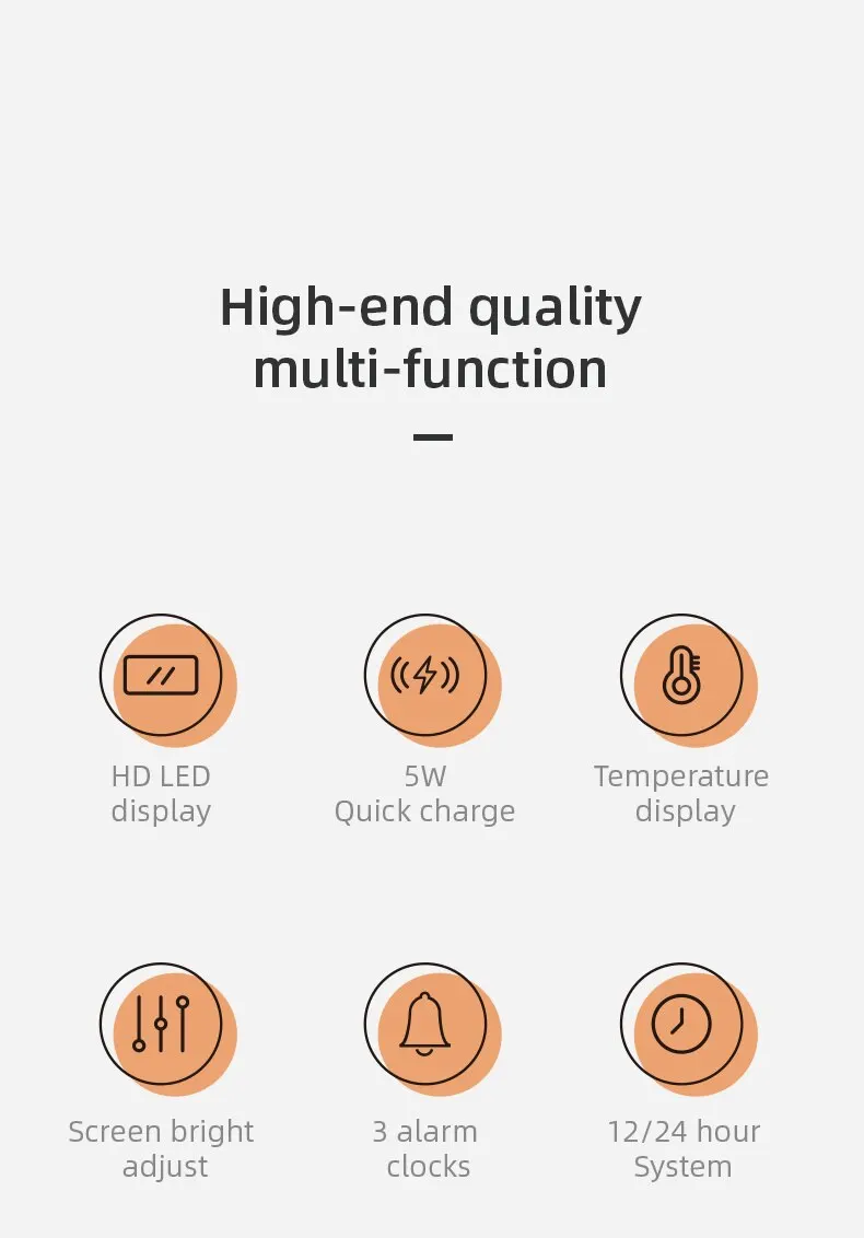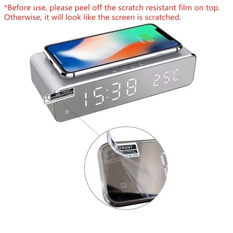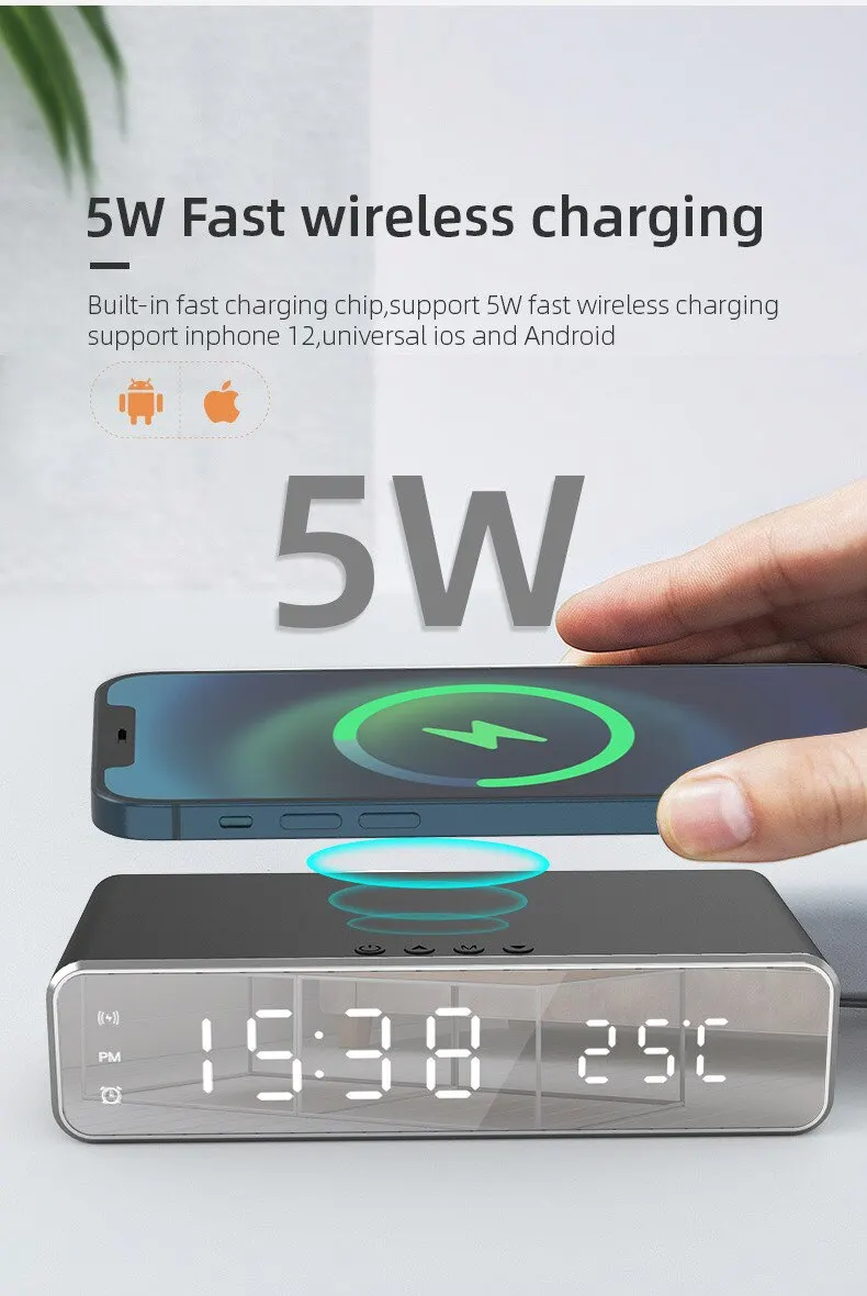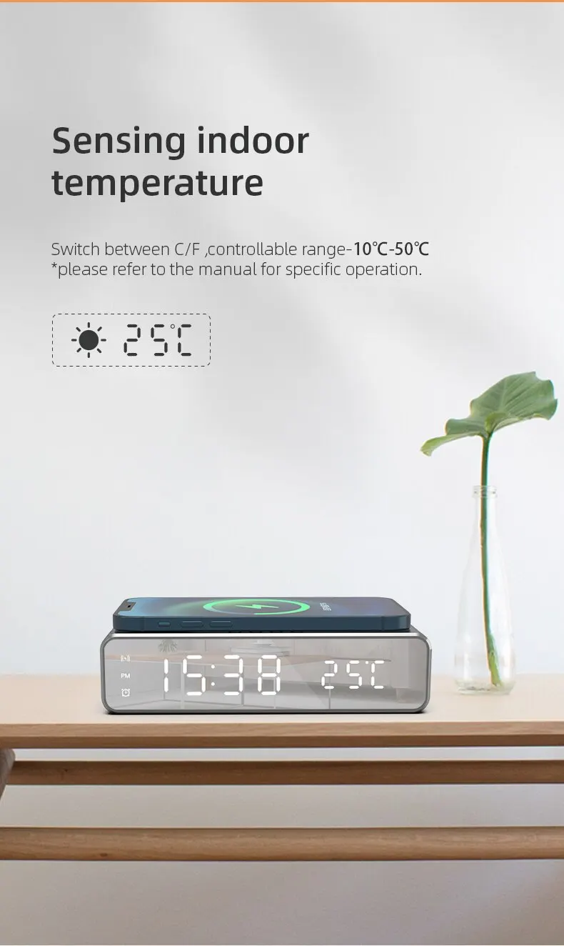 • Dual Functionality :This wireless charger doubles as a time alarm clock and digital thermometer, making it a versatile addition to your home or office.