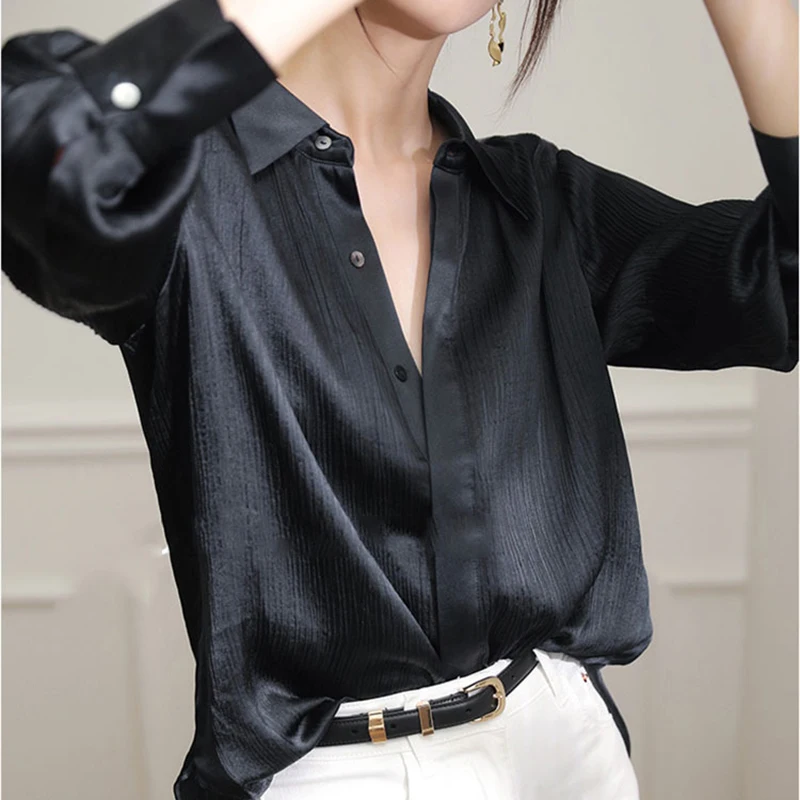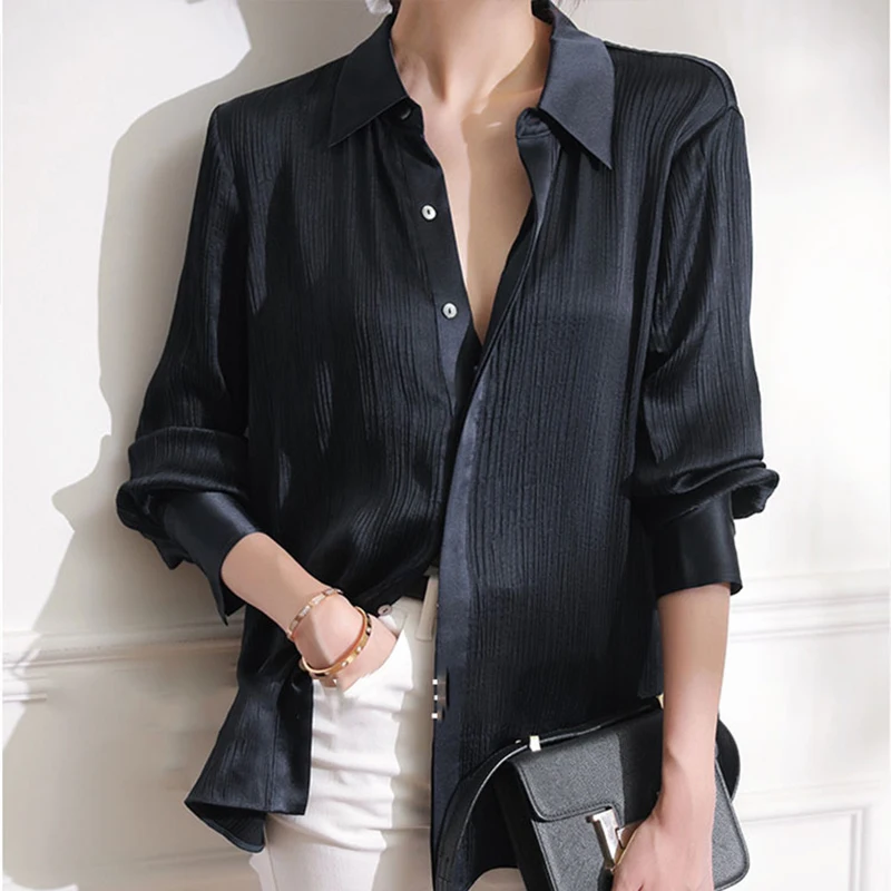 Women Button Up Shirt 2023 Autumn Fashion Turn-down Collar Long Sleeve Ruched Blouse Office Lady Elegant Long Cardigan Loose Top