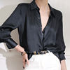 Women Button Up Shirt 2023 Autumn Fashion Turn-down Collar Long Sleeve Ruched Blouse Office Lady Elegant Long Cardigan Loose Top
