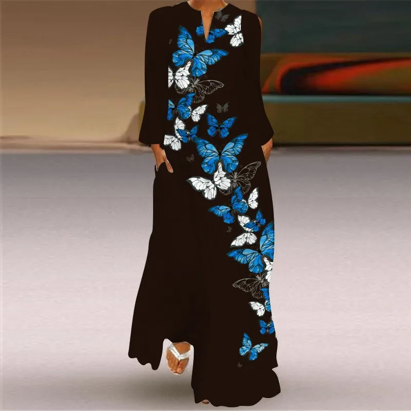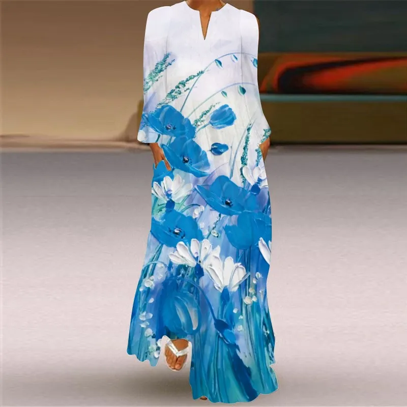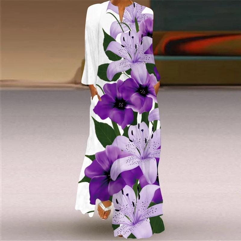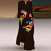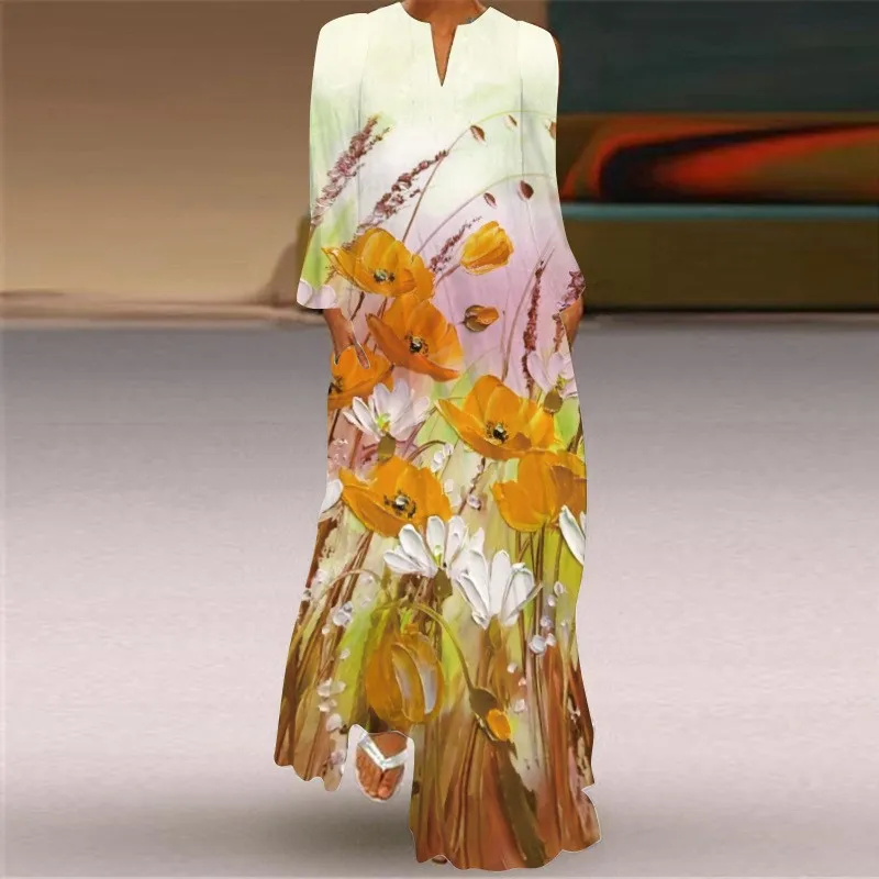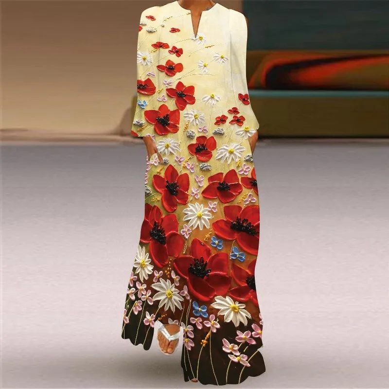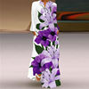 Women Dress 2023 Spring Maxi Dress Women Elegant Long Sleeve Casual Loose 3D Print Dresses Woman Party V Neck Long Women’s Dress