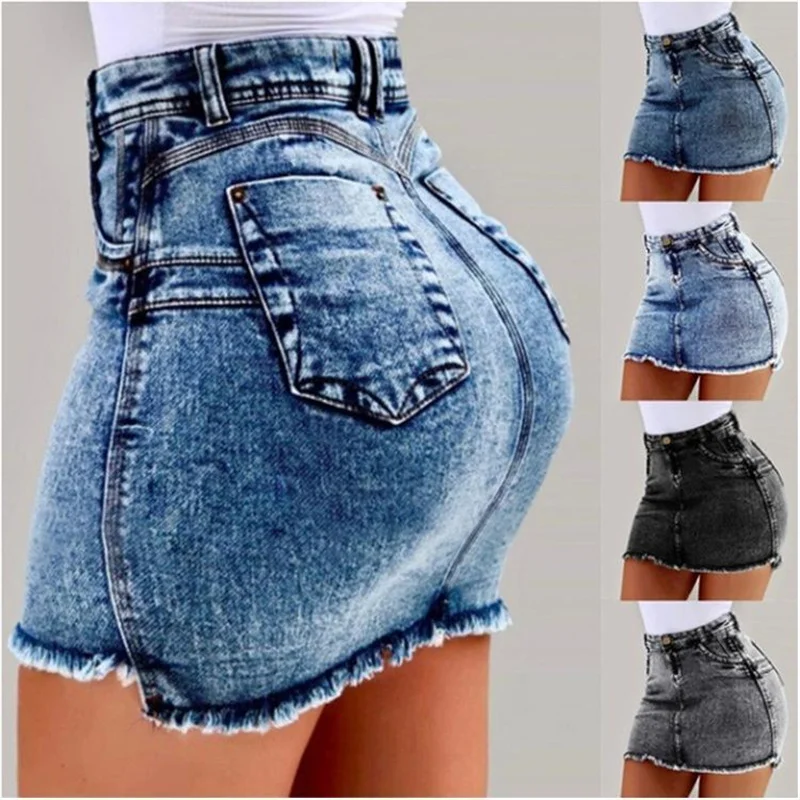 Women Sexy High Waisted Black Mini Denim Skirt 2023 Summer Ladies Casual Slim Bodycon Short Jeans Skirt Hip-Wrapped Denim Skirts