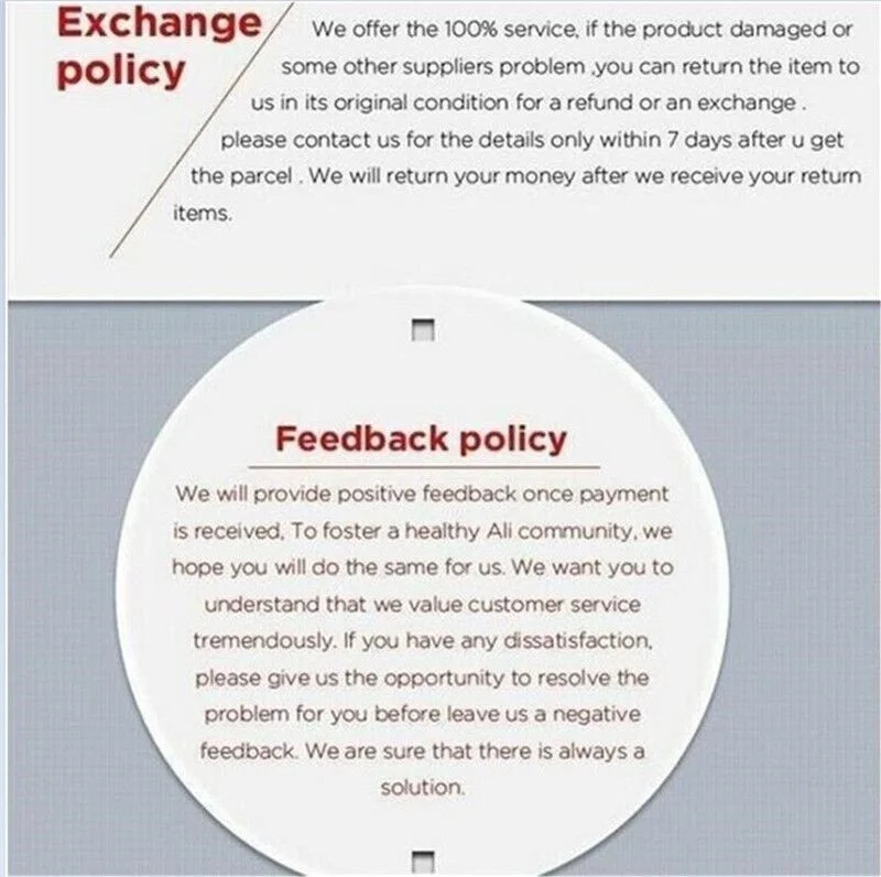 • If you received the wrong item you can request a refund or a reshipment.