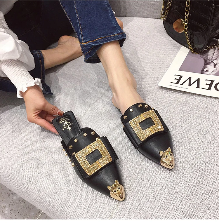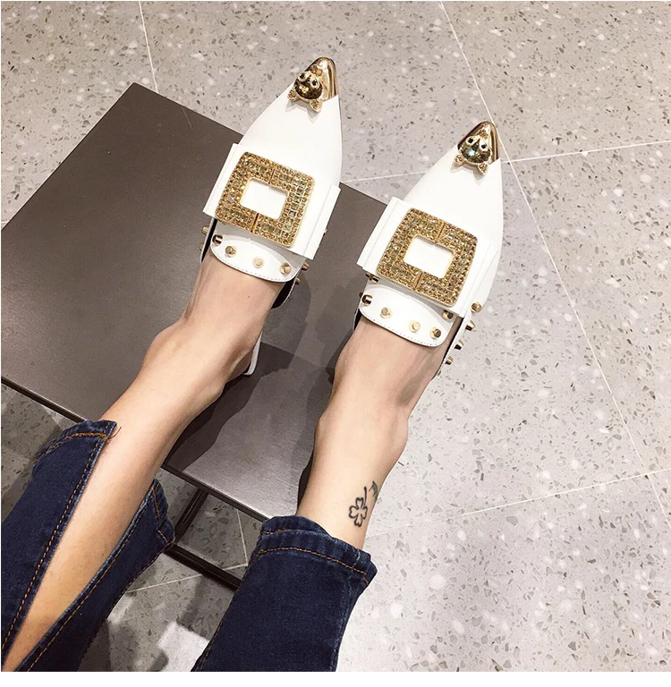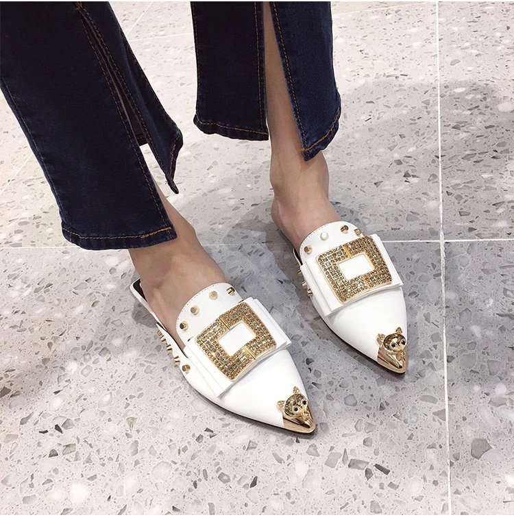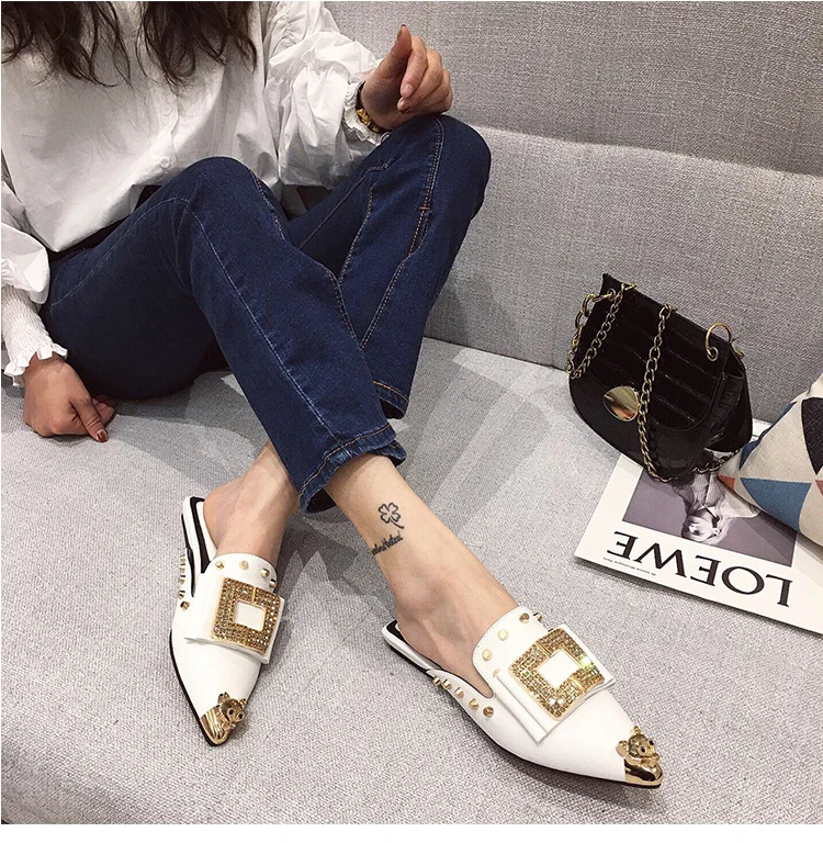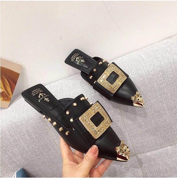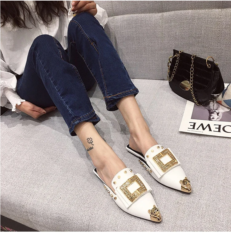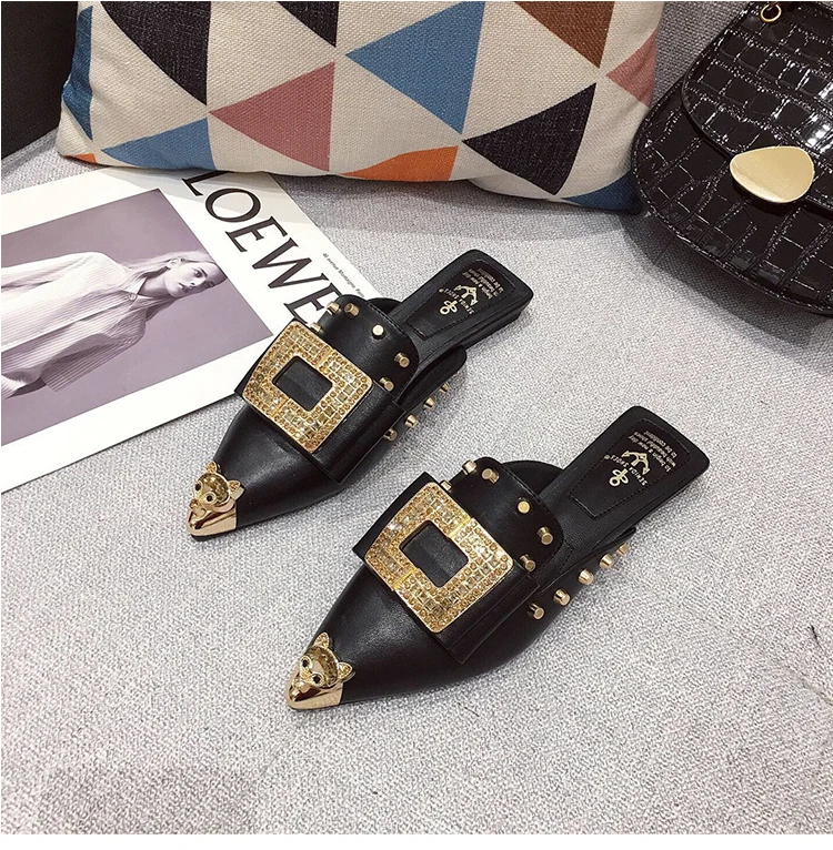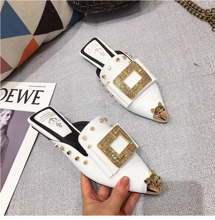 Women Slippers Summer Mules Luxury Shoes Slip-on Loafer Design Slide Ladies Party Pointed Toe Flats Girls Designer Shoes Fashion
