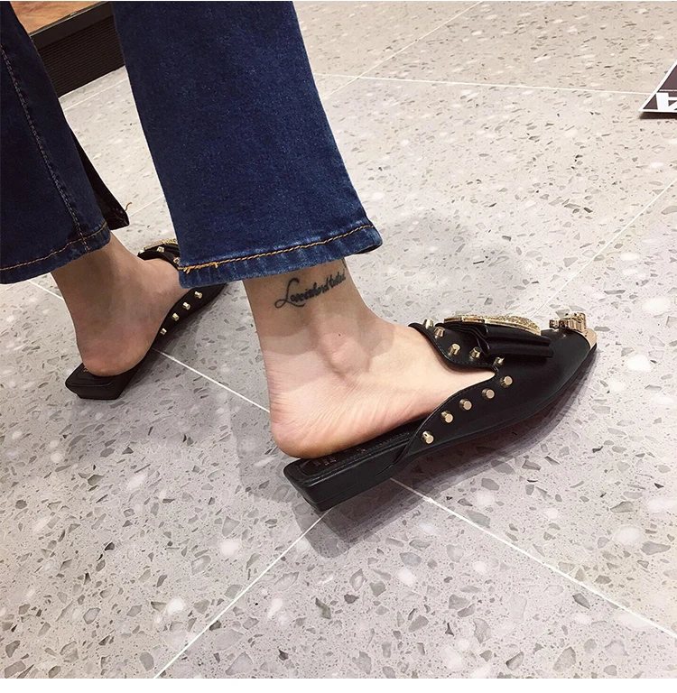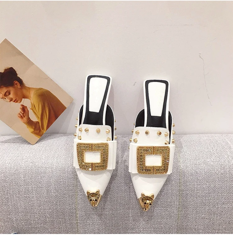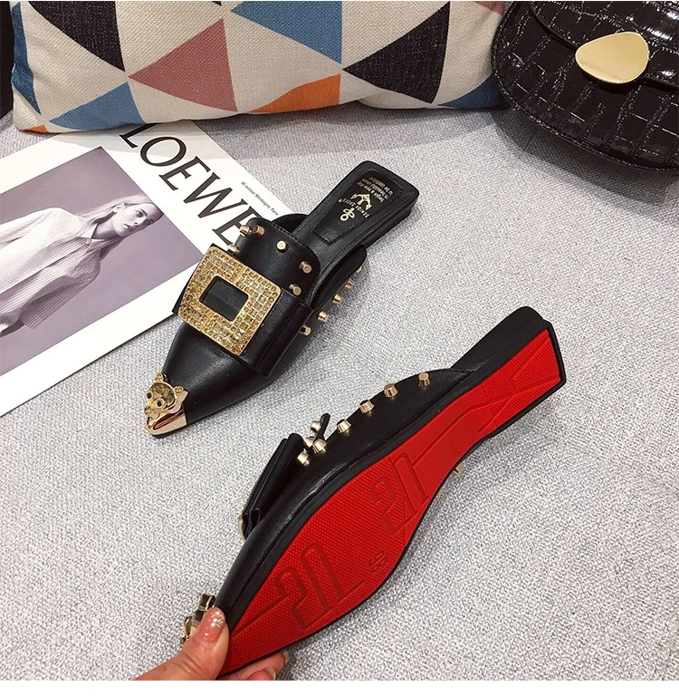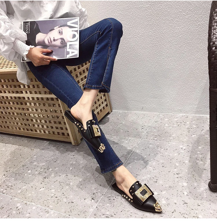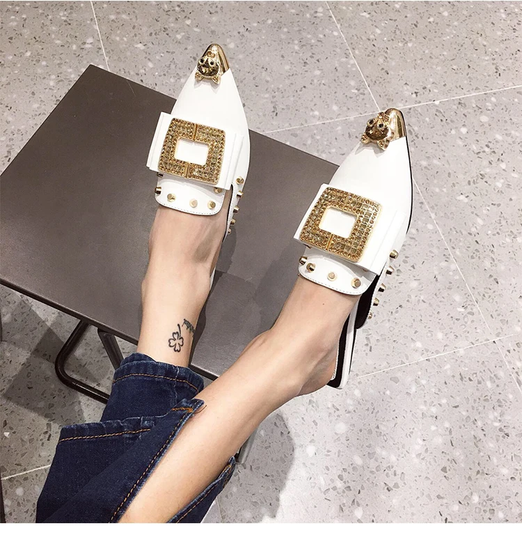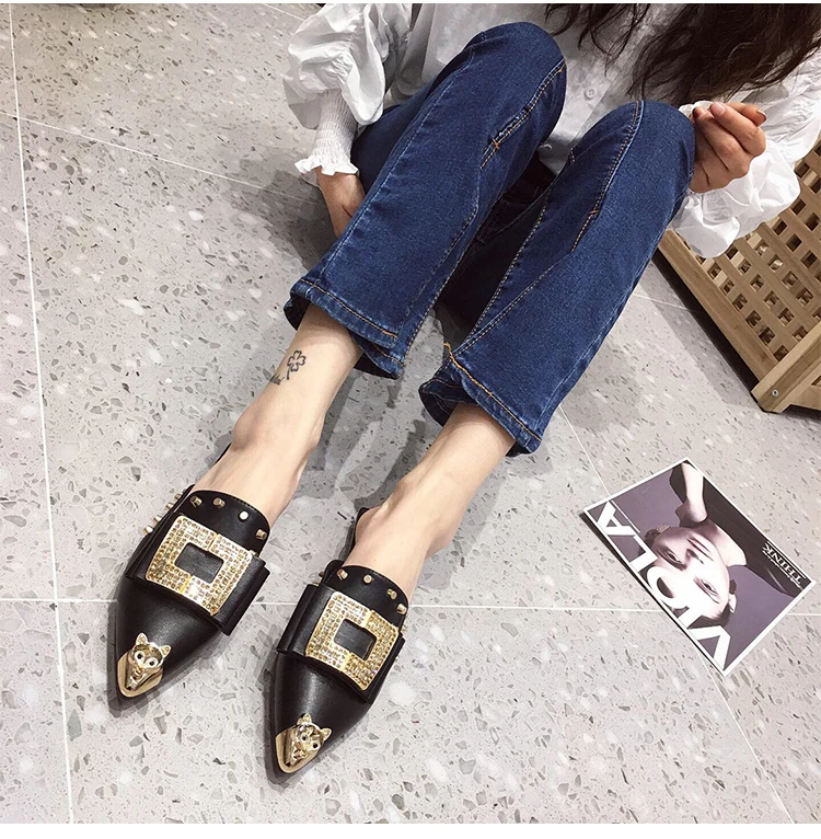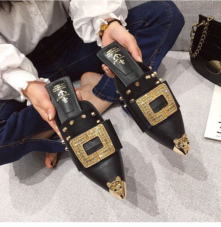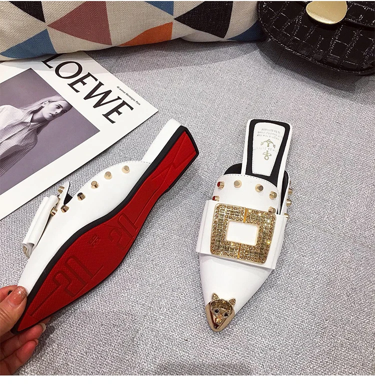 Women Slippers Summer Mules Luxury Shoes Slip-on Loafer Design Slide Ladies Party Pointed Toe Flats Girls Designer Shoes Fashion