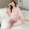 Women’s 2 Piece Silk Satin Pajamas Leopard Print Pijama Lapel Sleepwear Long Sleeves Female Pyjamas Fashion Lesiure Homewear