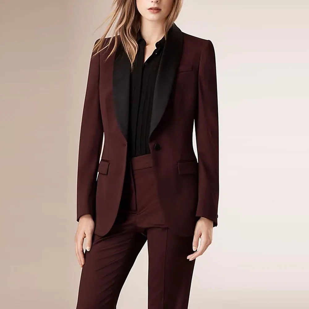 Women’s 2 Piece Tuxedo Suit In Wine Color Simple wedding Suit set Single Button Formal suit For Ladies Custom Made