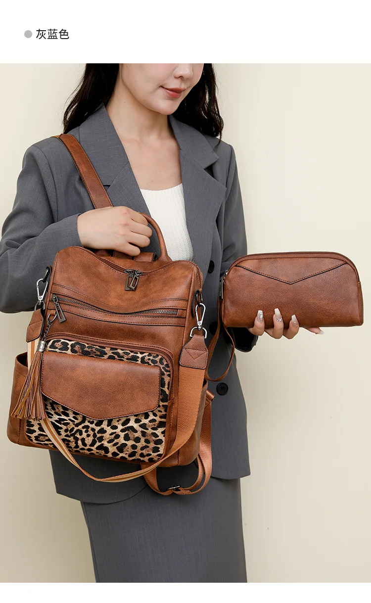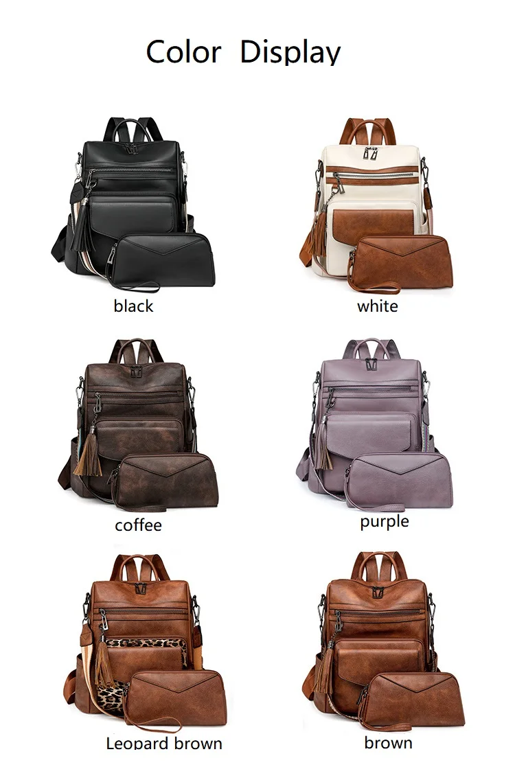 Womens Backpack Purse Leather Backpack Purse Fringe Design For Women Travel Fashion Designer Ladies Shoulder Bags 2 Pieces
