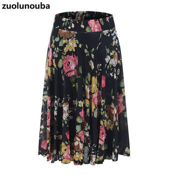 Autumn Middle-aged And Elderly Ladies Skirt Elastic Waist Ice Silk Double Layer Mid-length Flower Print Women Dancing Skirt