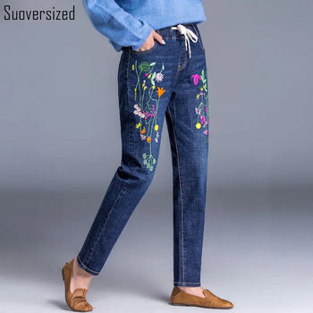 Embroider Jeans Women Spring Autumn Denim Pants Female Loose High Waist Stretch Jeans Femme Large Size Cowboy Pants