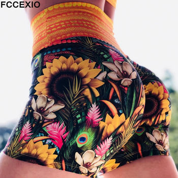 FCCEXIO Sunflower 3D Print Shorts Leggings Sport Women Fitness Sexy High Waist Pants Tights Running Slim Workout Leggin S-3XL