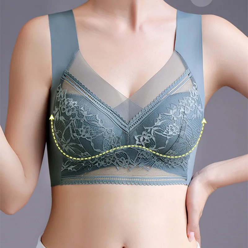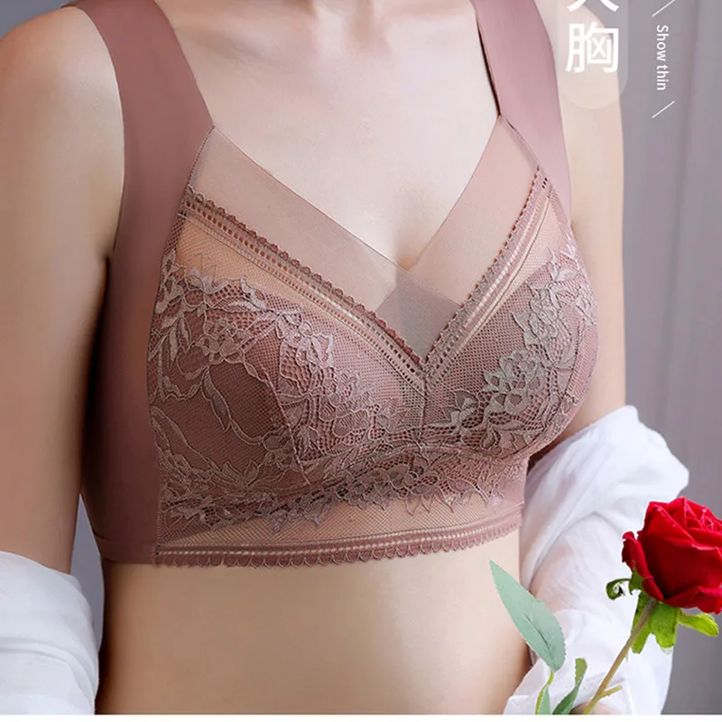 Women’s Bra Large Size Seamless Thin Lace Wrap Chest Underwear One-Piece Fixed Cup No Steel Ring Gather Vest Bra Women