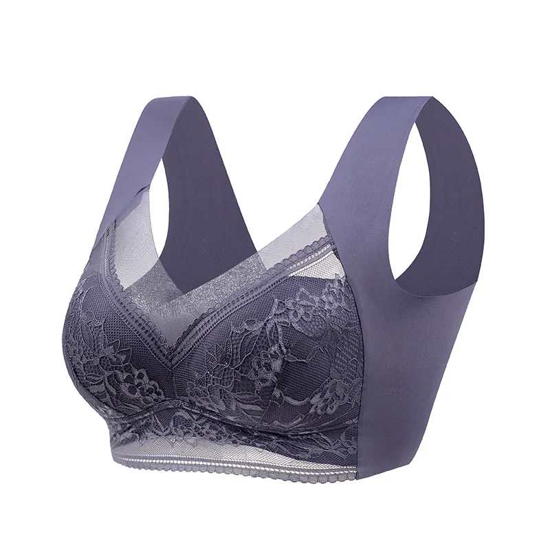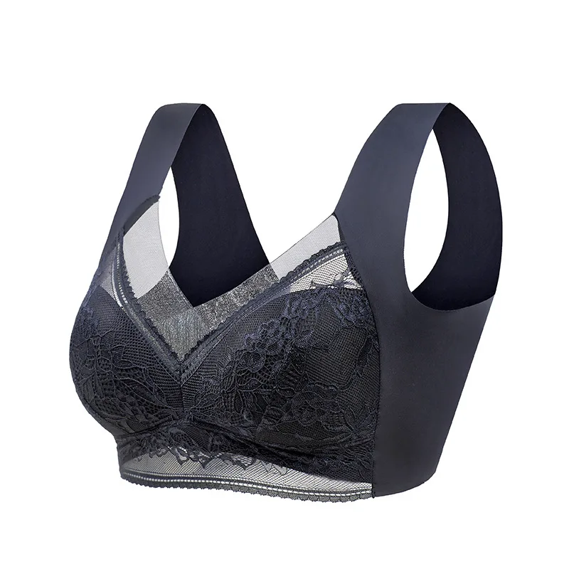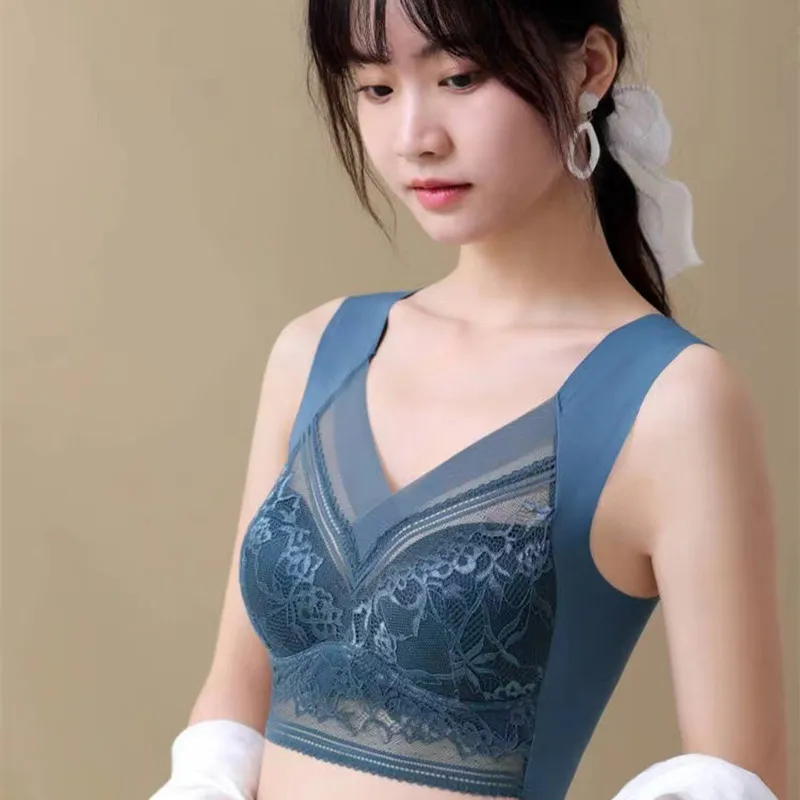 Women’s Bra Large Size Seamless Thin Lace Wrap Chest Underwear One-Piece Fixed Cup No Steel Ring Gather Vest Bra Women
