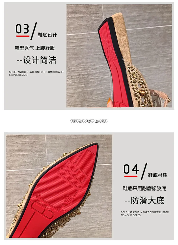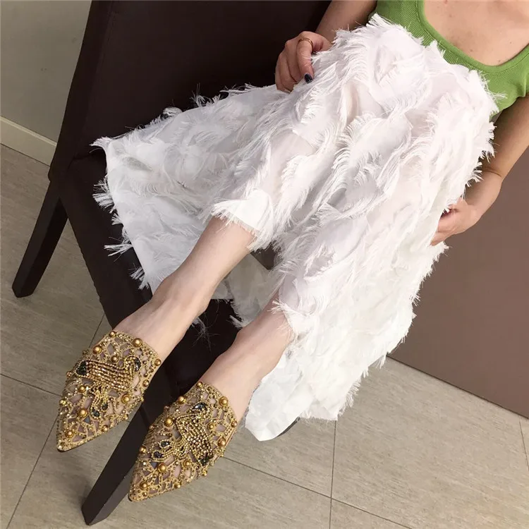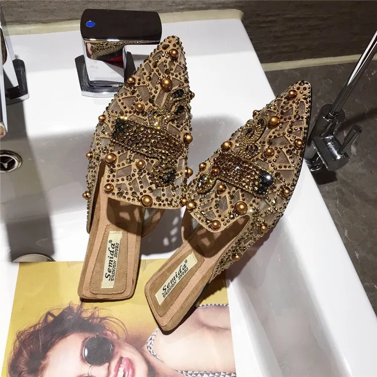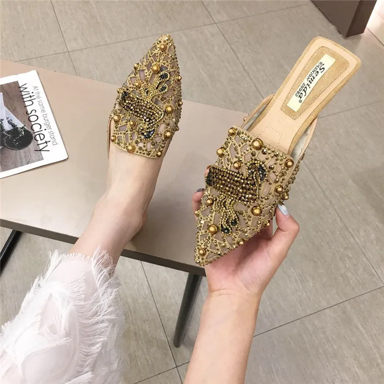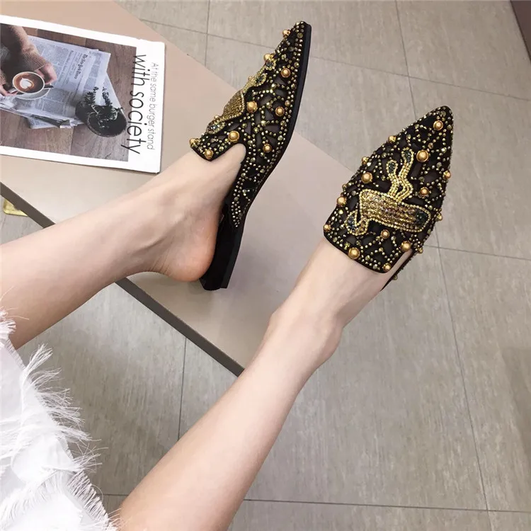 Women’s Flat Pointed Toe Closed Slip-on Slippers Rivet Summer Slip-on Loafer Women Mules Backless Low Heel Ladies Shoes Designer