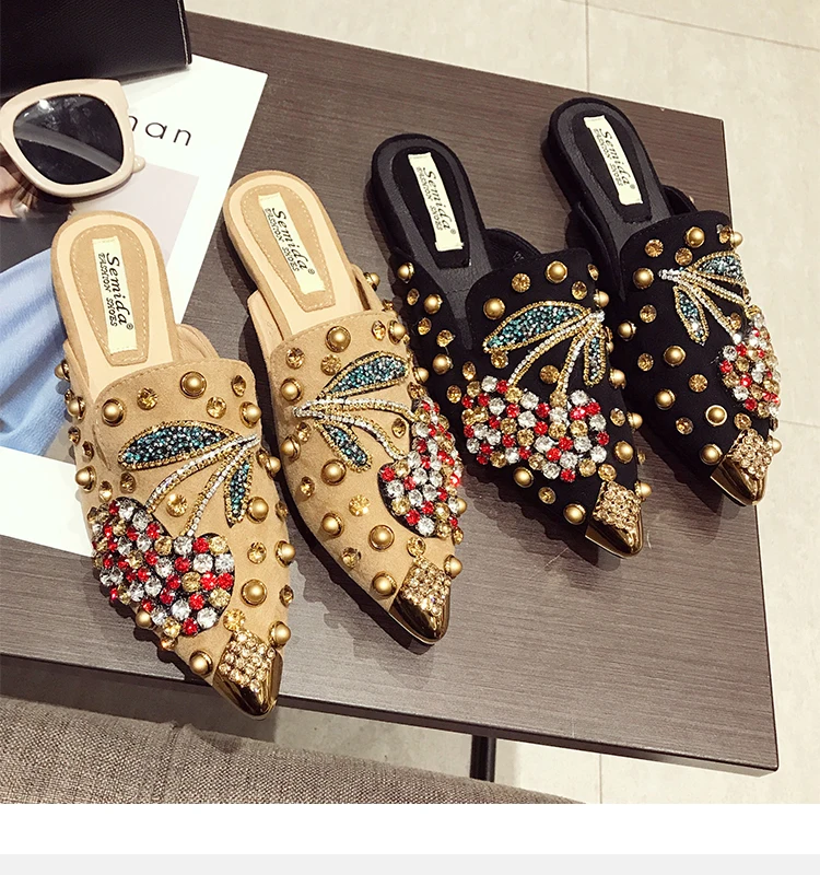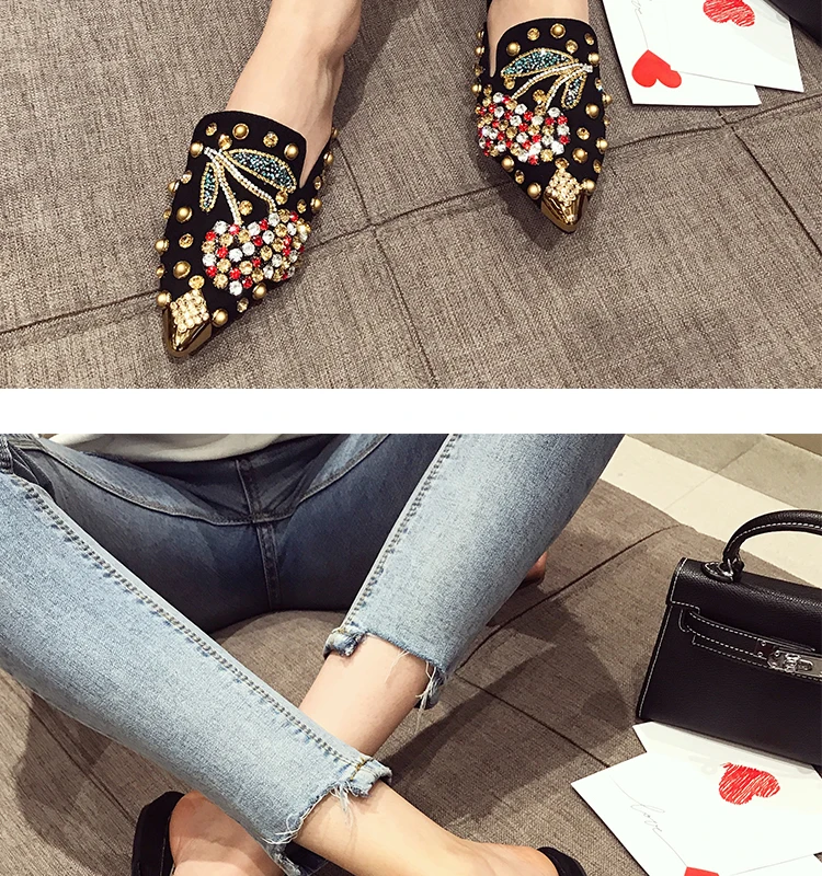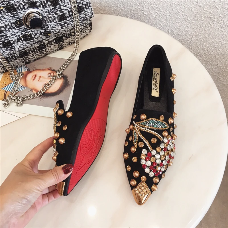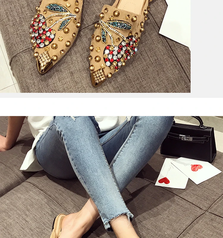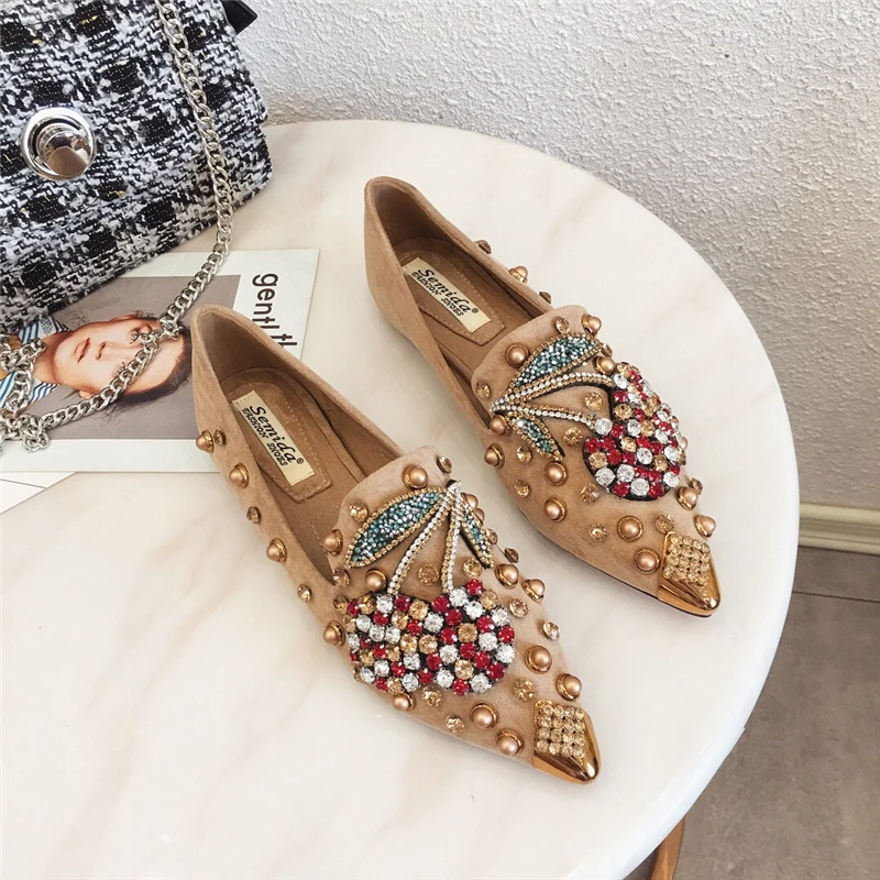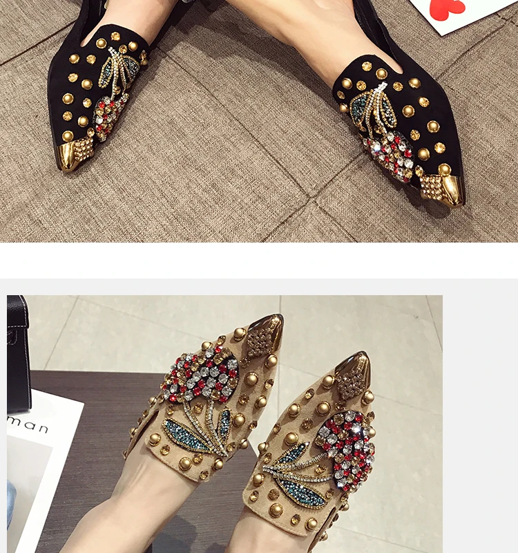 Women’s Flats Pointed Toe Loafers Slip-on Mules Ballet Slippers Wedding Platform Casual Female Shoes Metal Luxury Shoes Ladies