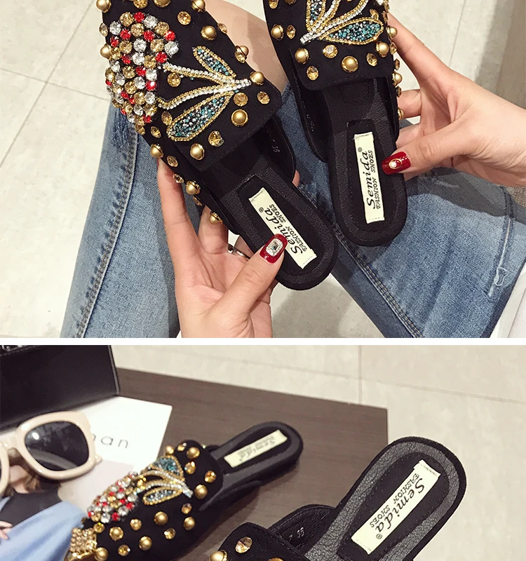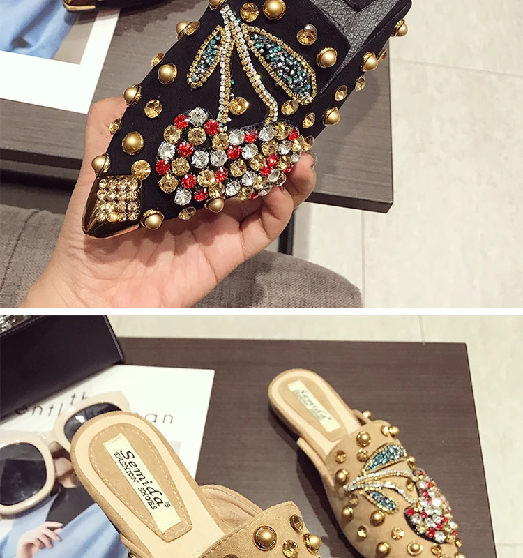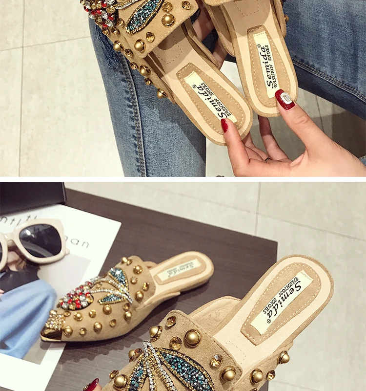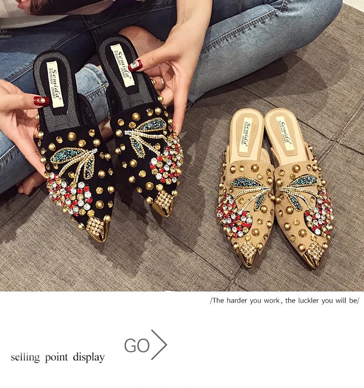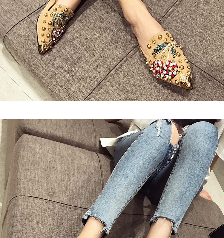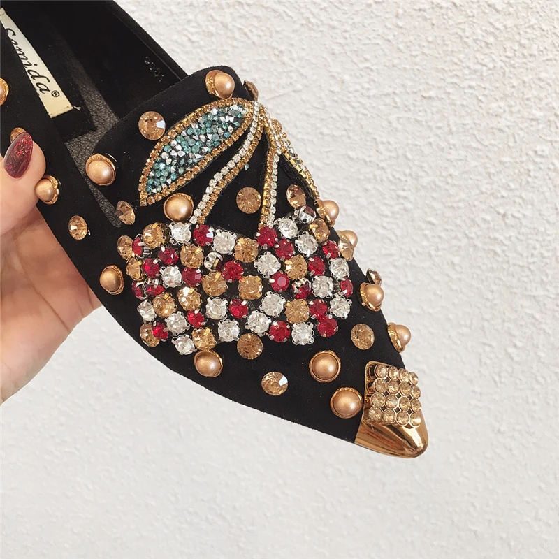 Women’s Flats Pointed Toe Loafers Slip-on Mules Ballet Slippers Wedding Platform Casual Female Shoes Metal Luxury Shoes Ladies