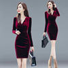 Women’s Golden Velvet Dress 2023 Spring And Summer V-neck Long Sleeve Slim Dresses Female Hip Wrap Dress Mujer Vestidos