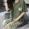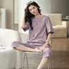 Womens Plus Size Pajamas M-5XL Knee-length Leisure Womans Sleepwear New Big Size Ladies Elegant Floral Printing Pyjama Home Suit