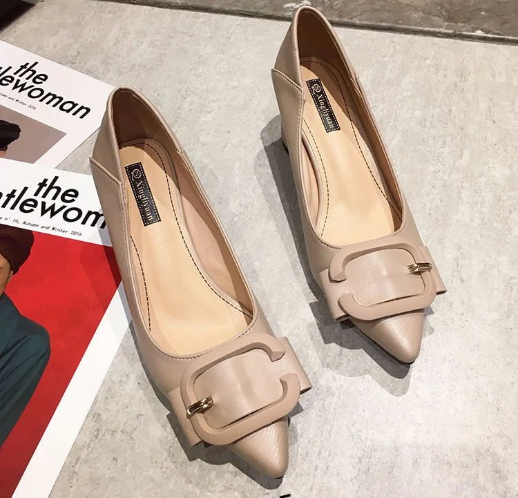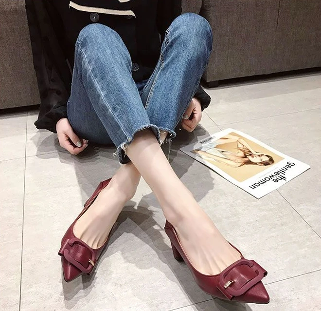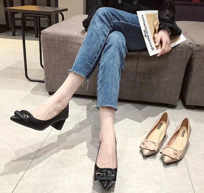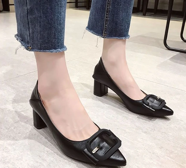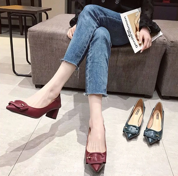 Women’s Summer Footwear Block Heel Shoes for Woman 2023 Chunky Heels Office Green Moccasins Pointed Toe with Medium Discount E A