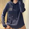 Women’s Vintage Autumn Winter Solid Color Hooded Drawstring Printing Long Sleeve Underlay All-match Casual Pullover Hoodies Tops