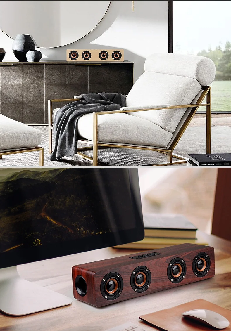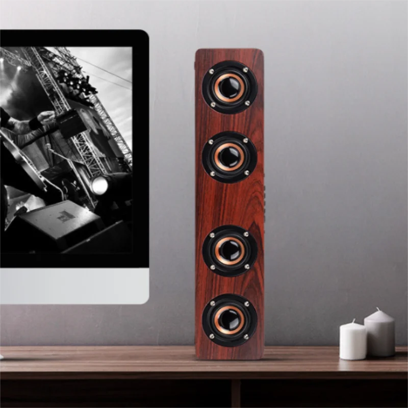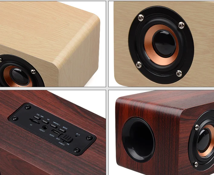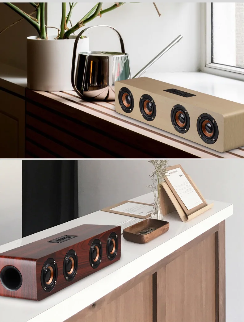 Wooden Soundbar Bluetooth Speaker Music Acoustic System 20W HIFI Stereo Music Surround LED Display Outdoor Speaker With FM Radio