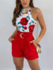wsevypo Women Summer Vest and Shorts Sets Casual Sleeveless Halter Vest Tank Tops+ High Waist Shorts with Waist Belt 2Pcs Suits