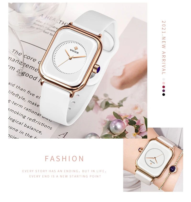 WWOOR Luxury Brand Watches For Women Fashion Square Purple Ladies Quartz Wristwatch Waterproof Silicone Band Relogio Feminino