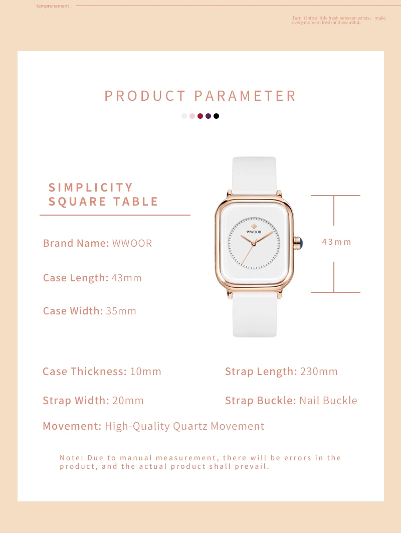 ★1 x WWOOR ladies square watch