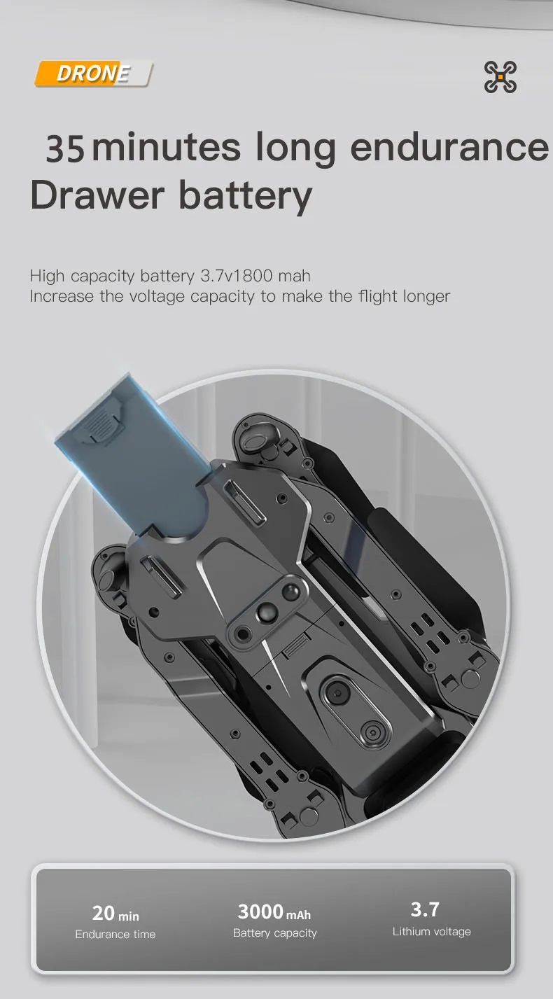 3. Ultra-long battery life 3.7V 2200mAh lithium-ion battery, battery life is about 25 minutes,