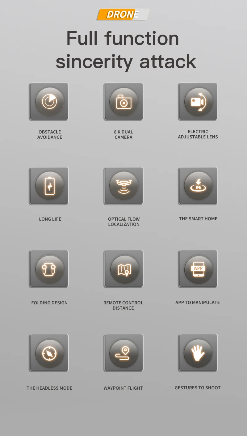 6. Gesture photography, optical flow positioning, brushless motor, super long battery life, obstacle avoidance gimbal components, stop without collision when encountering obstacles