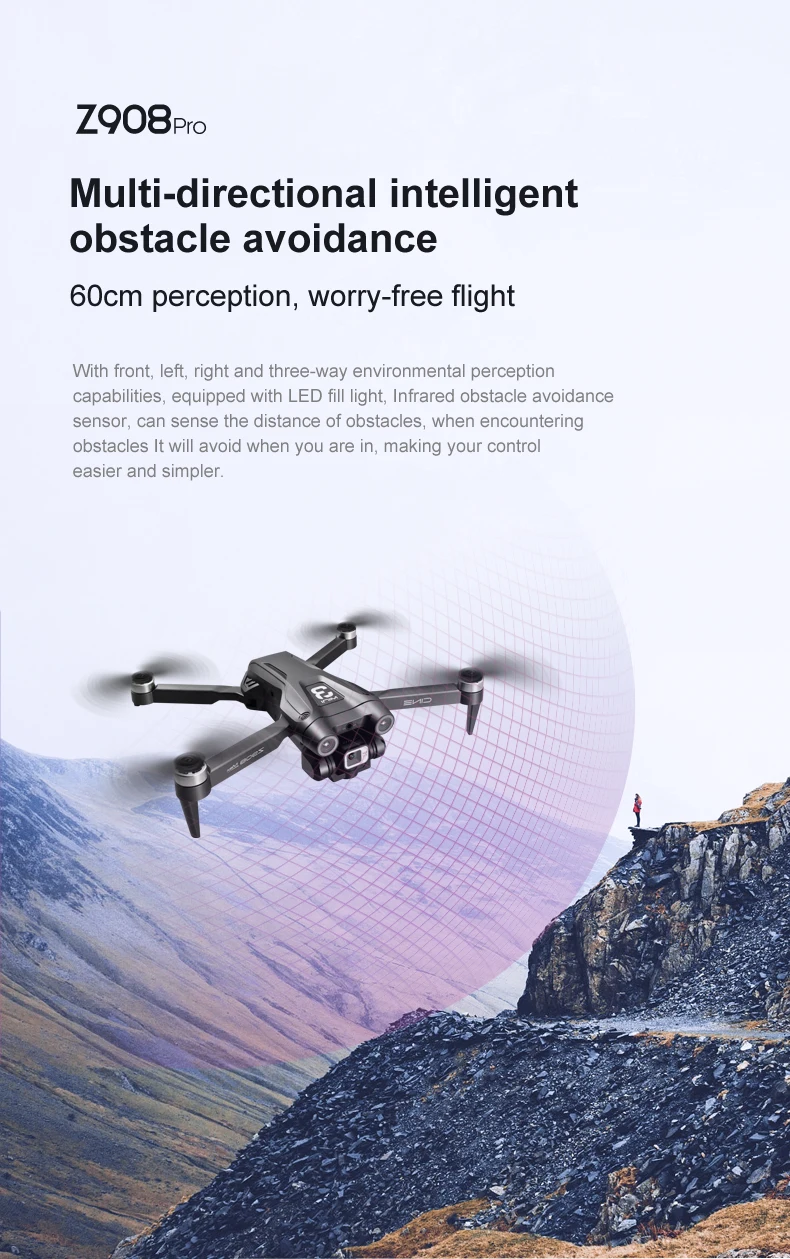 1. The front lens is placed with wide-angle 8K high-definition WIFI, and the optical flow high-definition lens at the bottom can switch the camera angle. The servo gimbal design increases stability, and EIS electronic image stabilization is added to make the picture lines clearer