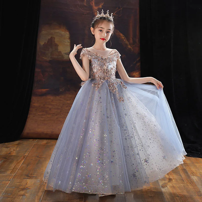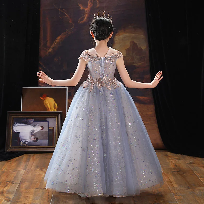 Young girls children little princess skirt high-end girls piano performance dress foreign style pompous yarn small host evening